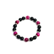 こちらは、モリオンとピンクタイガーアイを組み合わせたパワーストーンブレスレットです。間にはロンデルを挟み高級感あるデザインに仕上げております。石大きさは腕にも馴染みやすいように10mm玉で内径約18cm(伸可能)です。 数に限りがございますので気になる方はお早めにどうぞ。