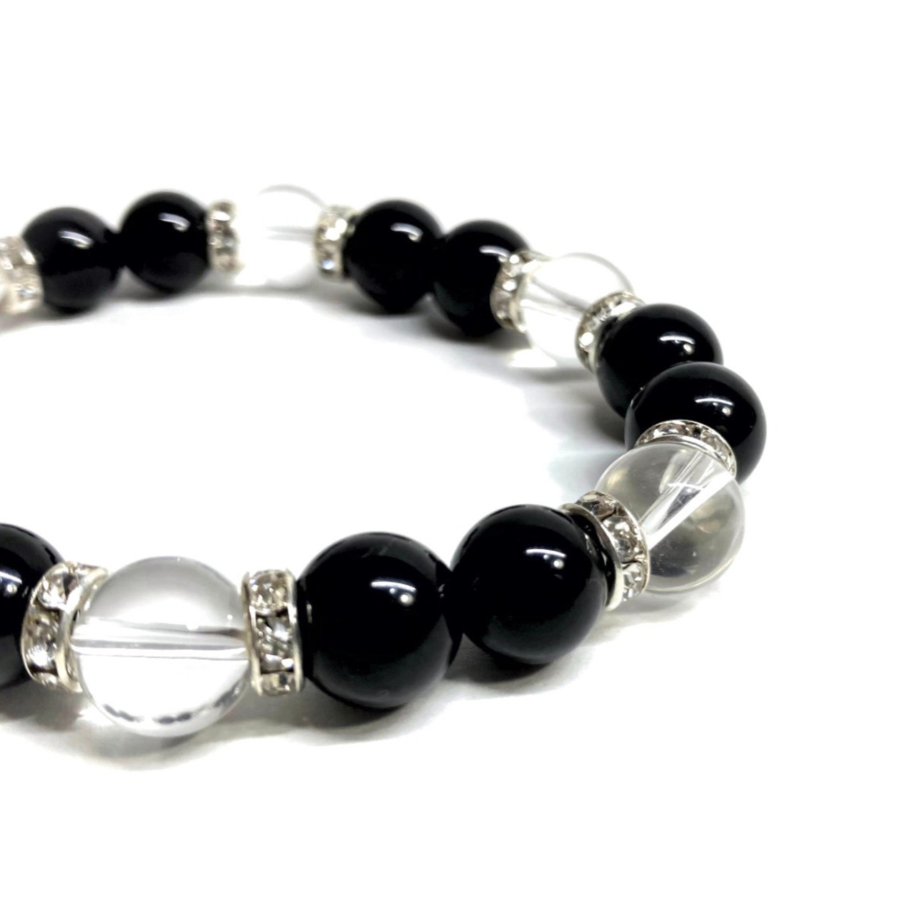 モリオン&水晶 パワーストーン ブレスレット 天然石ブレス (シルバー) 10mm メンズ・レディース 厄除け 開運 願望成就 魔よけ お守り ☆