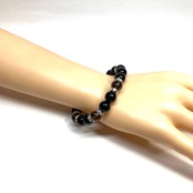 こちらは、モリオンとスモーキークォーツを組み合わせたパワーストーンブレスレットです。間にはロンデルを挟み高級感あるデザインに仕上げております。石大きさは腕にも馴染みやすいように10mm玉で内径約18cm(伸可能)です。 数に限りがございますので気になる方はお早めにどうぞ。