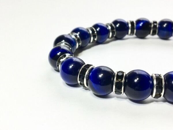 こちらは、10mm玉のブルータイガーアイを使用したブレスレットです。間にはロンデルが挟まれ高級感あるデザインに仕上がったブレスレット。シンプルなデザインですのでどんなコーディネートとも合わせ易いブレスレットです。石大きさは腕にも馴染みやすいように10mm玉で内周約18cmです。(オペロンゴムのため伸縮性があります) 数に限りがございますので気になる方はお早めにどうぞ。