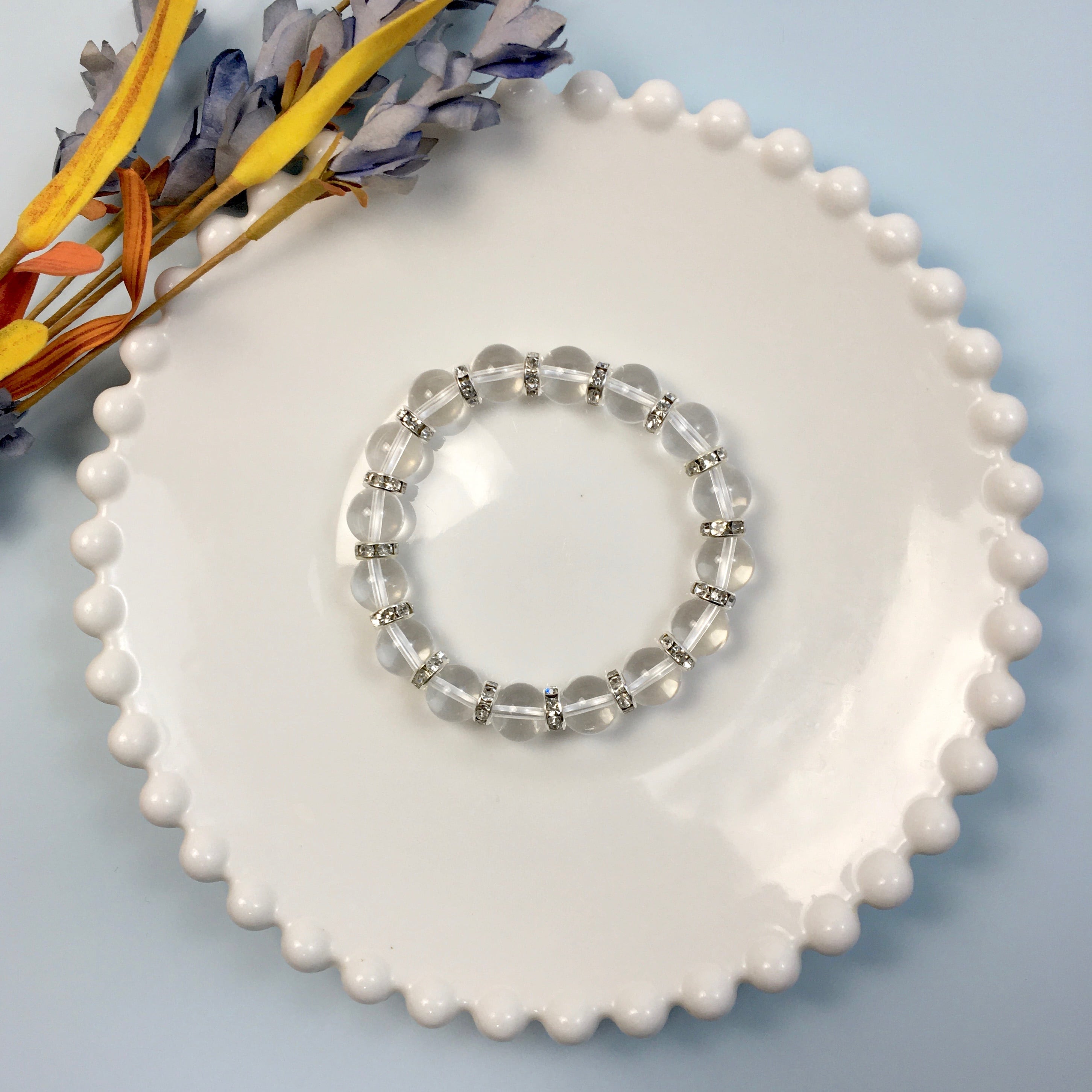 こちらは、水晶を使用した天然石ブレスレットです。石との間にはロンデルを挟み高級感あるデザインに仕上げています。石大きさは腕にも馴染みやすいように10mm玉を使用し、サイズは内周約16cmになります。(サイズ調節は無料です。ご連絡くださいませ。) また、ロンデル(パーツ)をカスタムできるようにしました。交換の際は種類を変えてご購入くださいませ。気になる方は是非この機会にどうぞ。