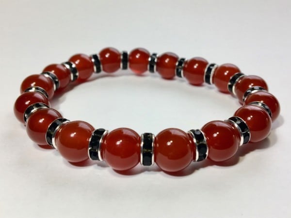 こちらは、10mm玉の赤メノウを使用したブレスレットです。間にはロンデルが挟まれ高級感あるデザインに仕上がったブレスレット。シンプルなデザインですのでどんなコーディネートとも合わせ易いブレスレットです。石大きさは腕にも馴染みやすいように10mm玉で内周約18cmです。(オペロンゴムのため伸縮性があります) 数に限りがございますので気になる方はお早めにどうぞ。
