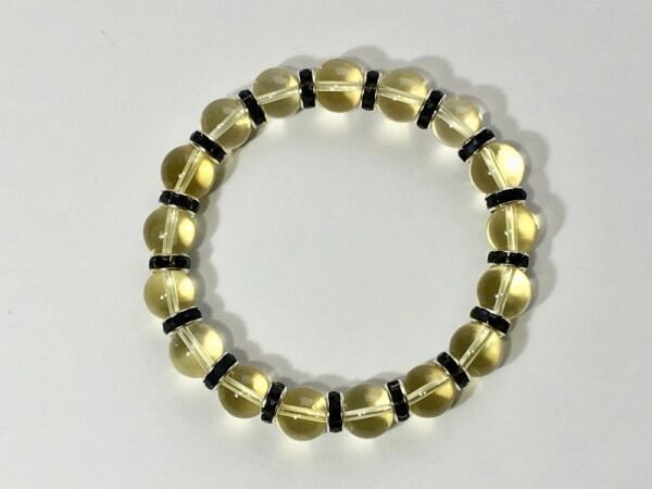こちらは、10mm玉のシトリンを使用した天然石ブレスレットです。間にはシルバーのロンデルで高級感あるデザインです。石大きさは腕にも馴染みやすいように10mm玉で内周約18cm(伸可能)です。気になる方は是非この機会にどうぞ。