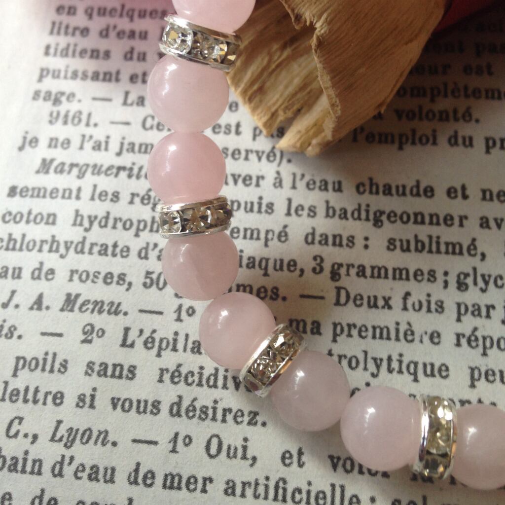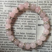 こちらは、ローズクオーツ天然石ブレスレットです。石はローズクオーツを使用して間にはシルバーのロンデルで高級感溢れるデザインに仕上がっています。石大きさは腕にも馴染みやすいように8mm玉で内周16cm(伸可能)です。気になる方は是非この機会にどうぞ。