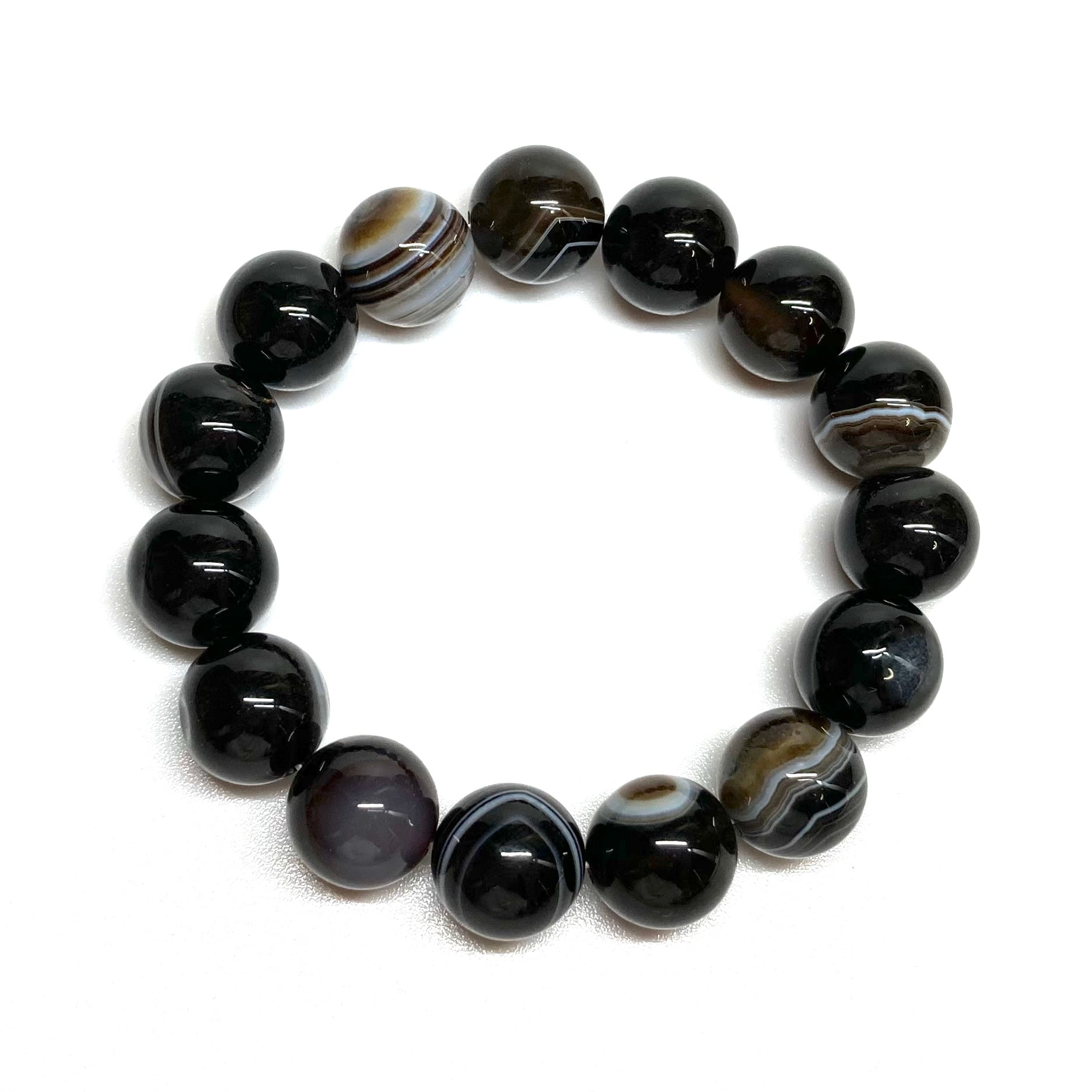 チベットアゲート(天眼石) パワーストーン ブレスレット 天然石ブレス 14mm シンプル メンズ・レディース 男性・女性 数珠ブレス 開運 ☆