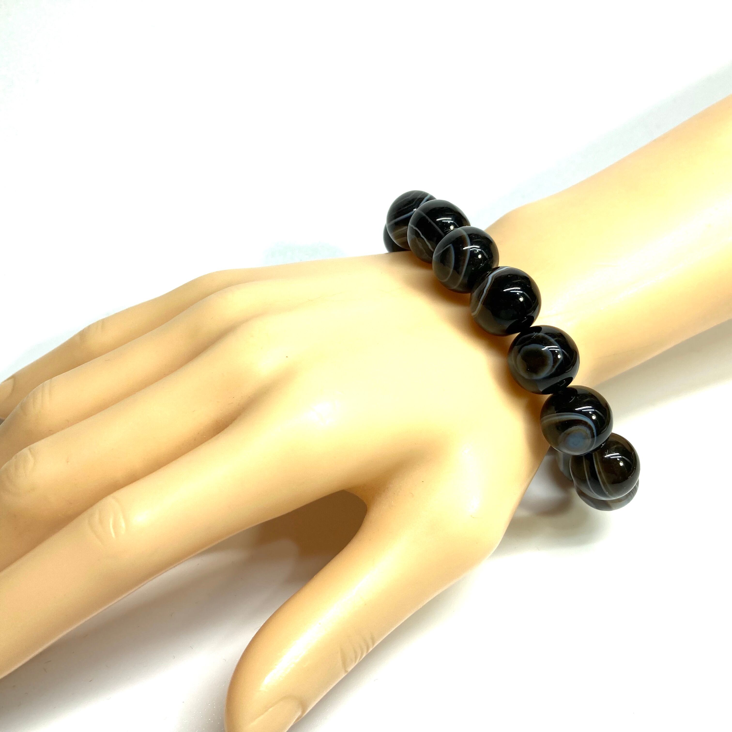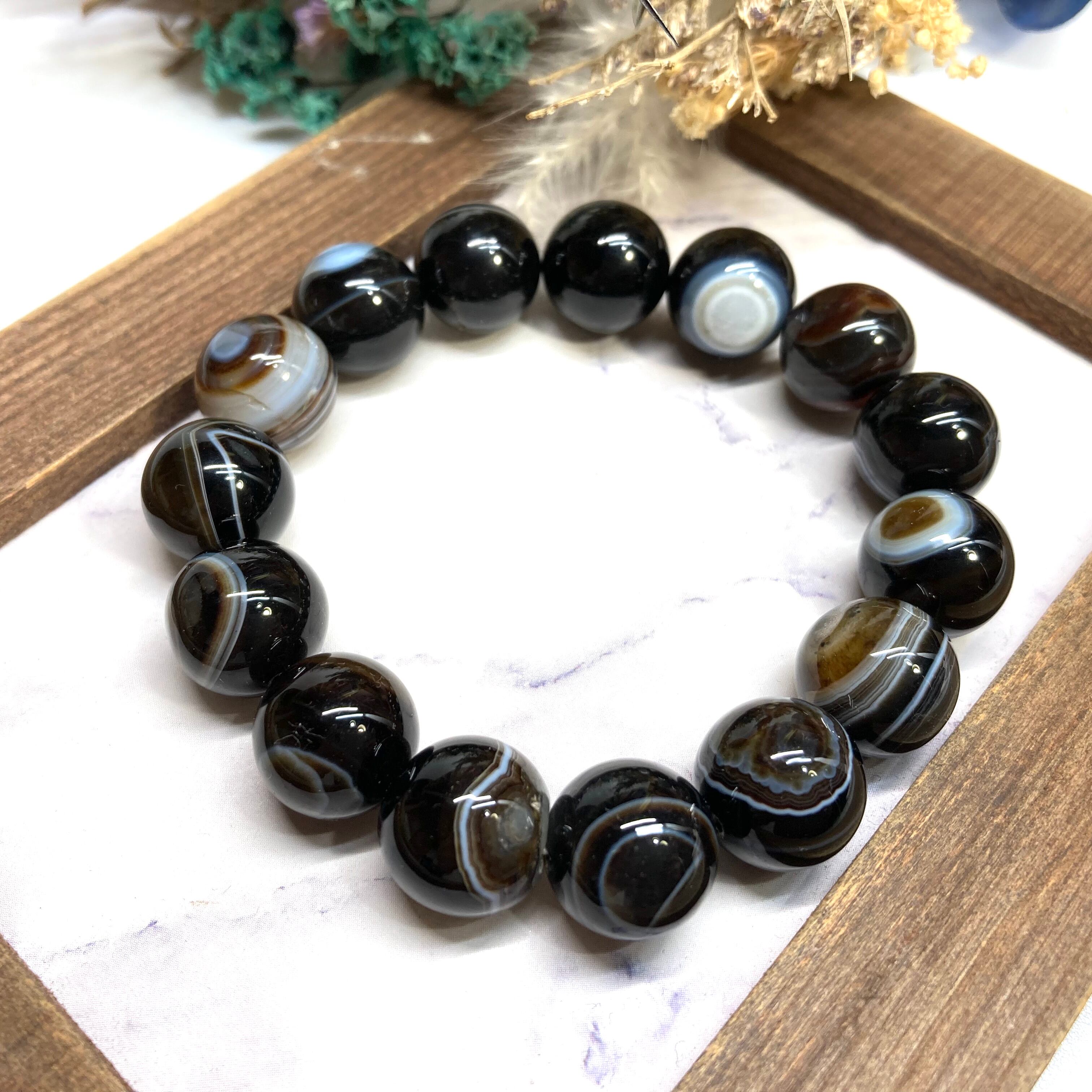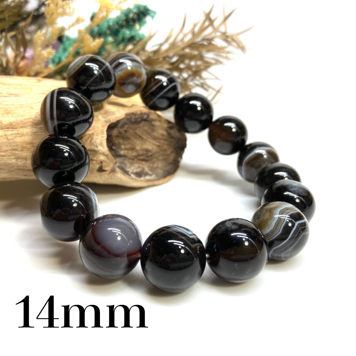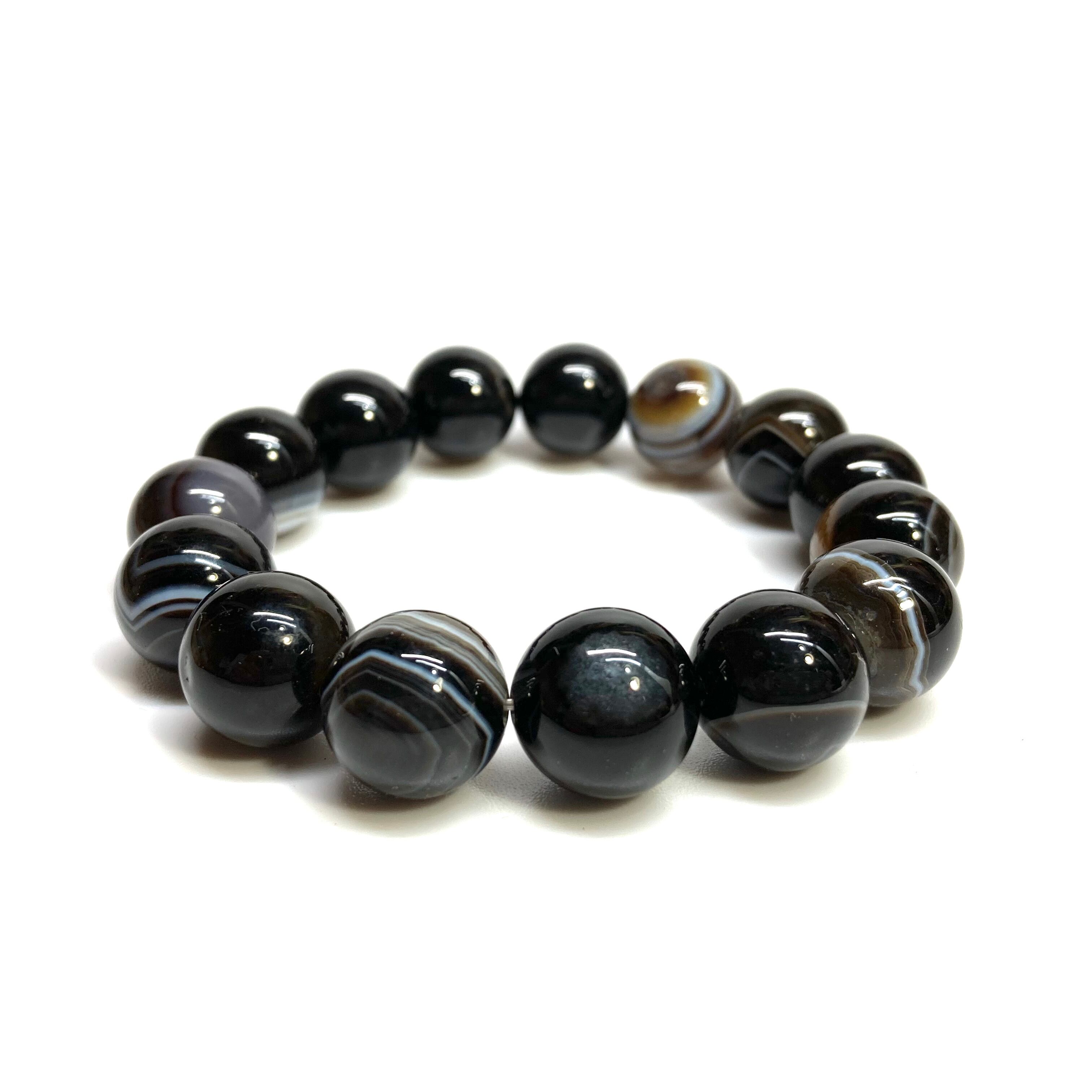 こちらは、14mm玉のチベットアゲート(天眼石)を使用した天然石ブレスレットです。シンプルなデザインですのでどんなコーディネートとも合わせ易いブレスレットです。石大きさはインパクトを与えてくれる大きさの14mm玉を使用しています。内周約17cmです。数に限りがございますので気になる方はお早めにどうぞ。
