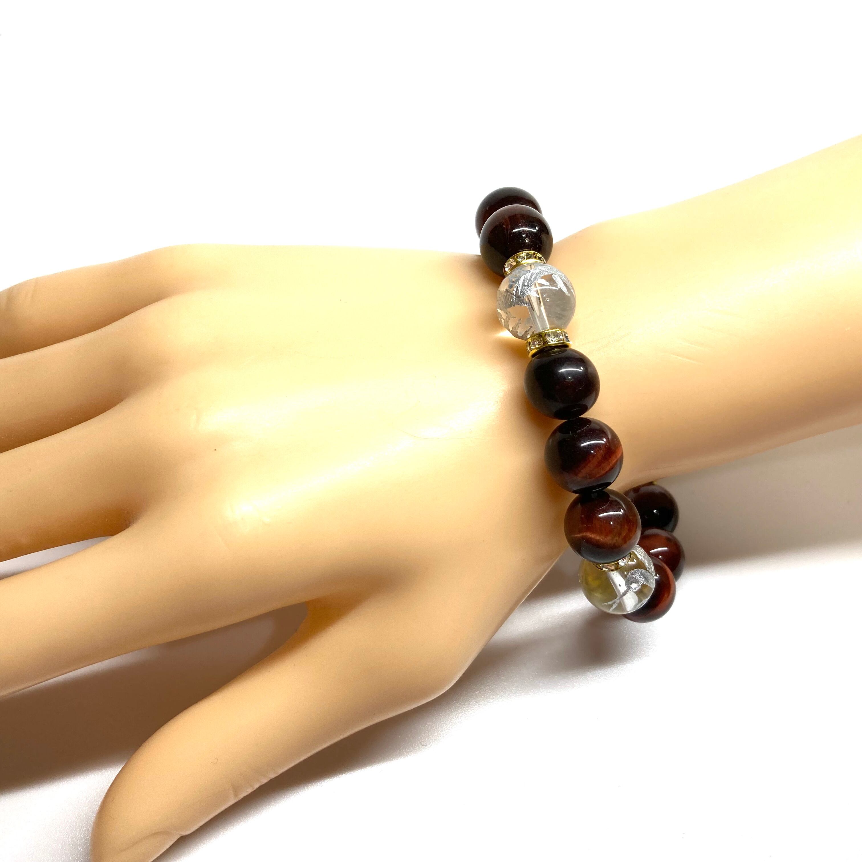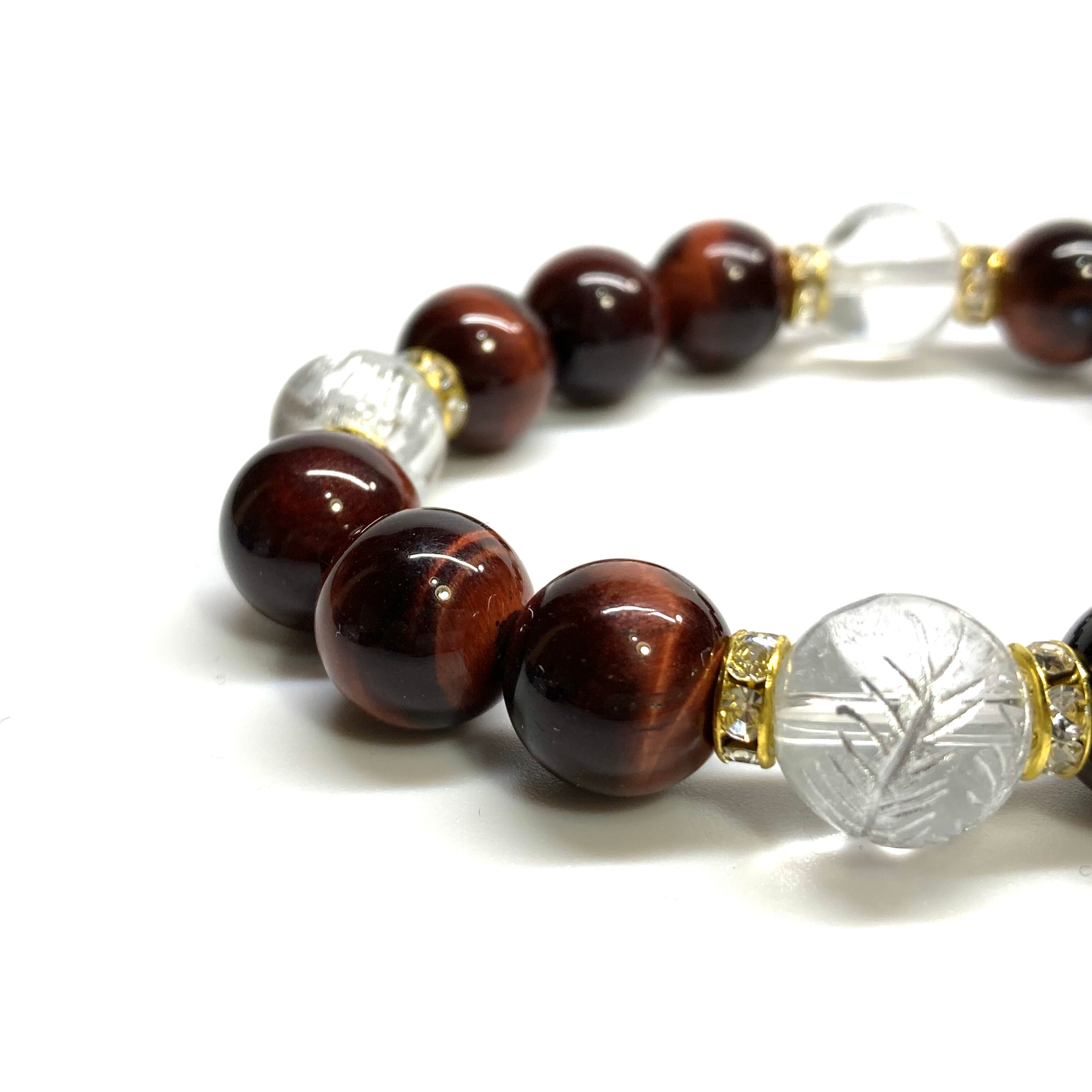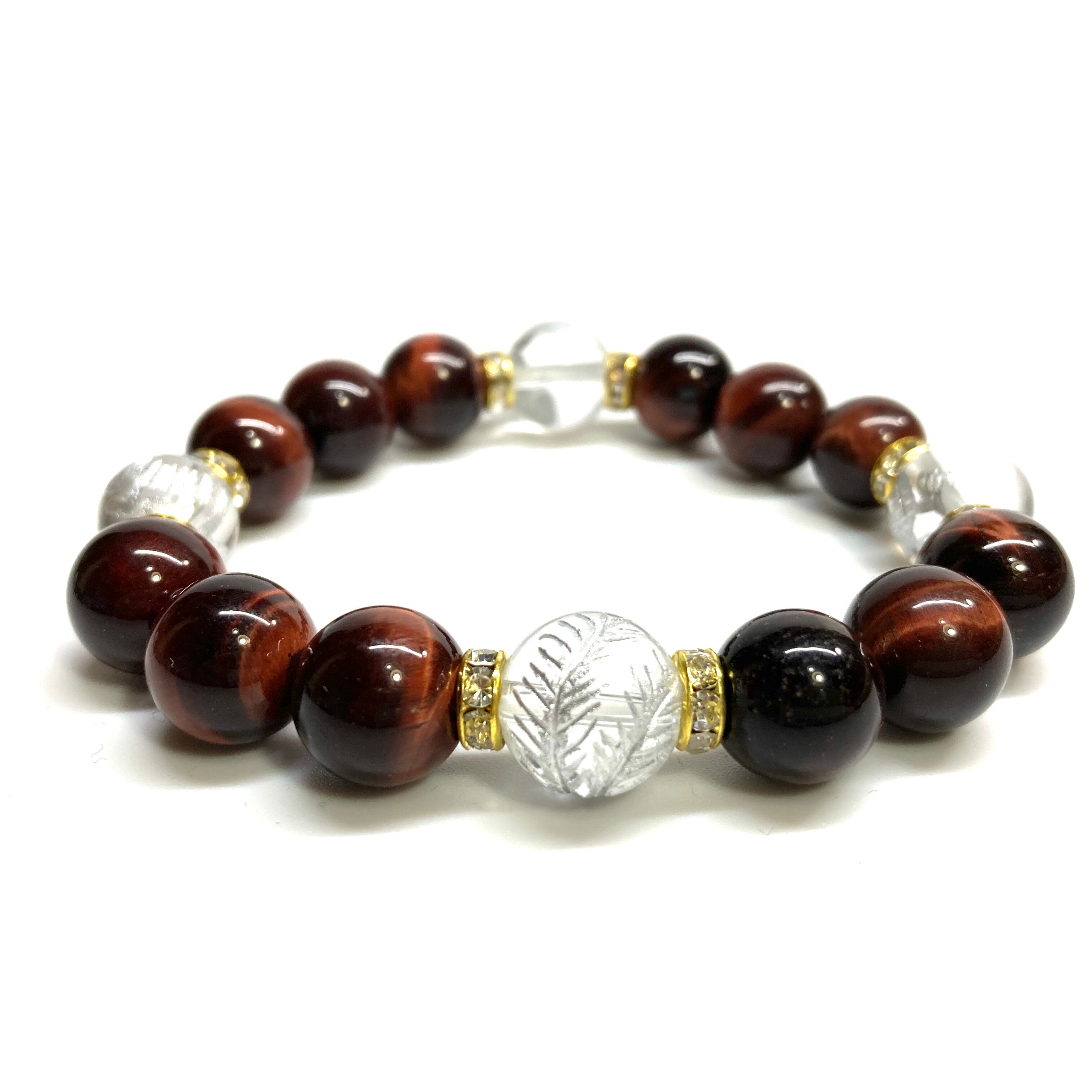 12mm 四神獣銀彫水晶×レッドタイガーアイ パワーストーン ブレスレット天然石 開運 ☆ 金運 ギャンブル運 お守り 青龍 白虎 玄武 朱雀 (ゴールド)メンズ・レディース 男性・女性 数珠ブレス 開運 ☆ | パワーストーン 天然石 Kinari&Co.