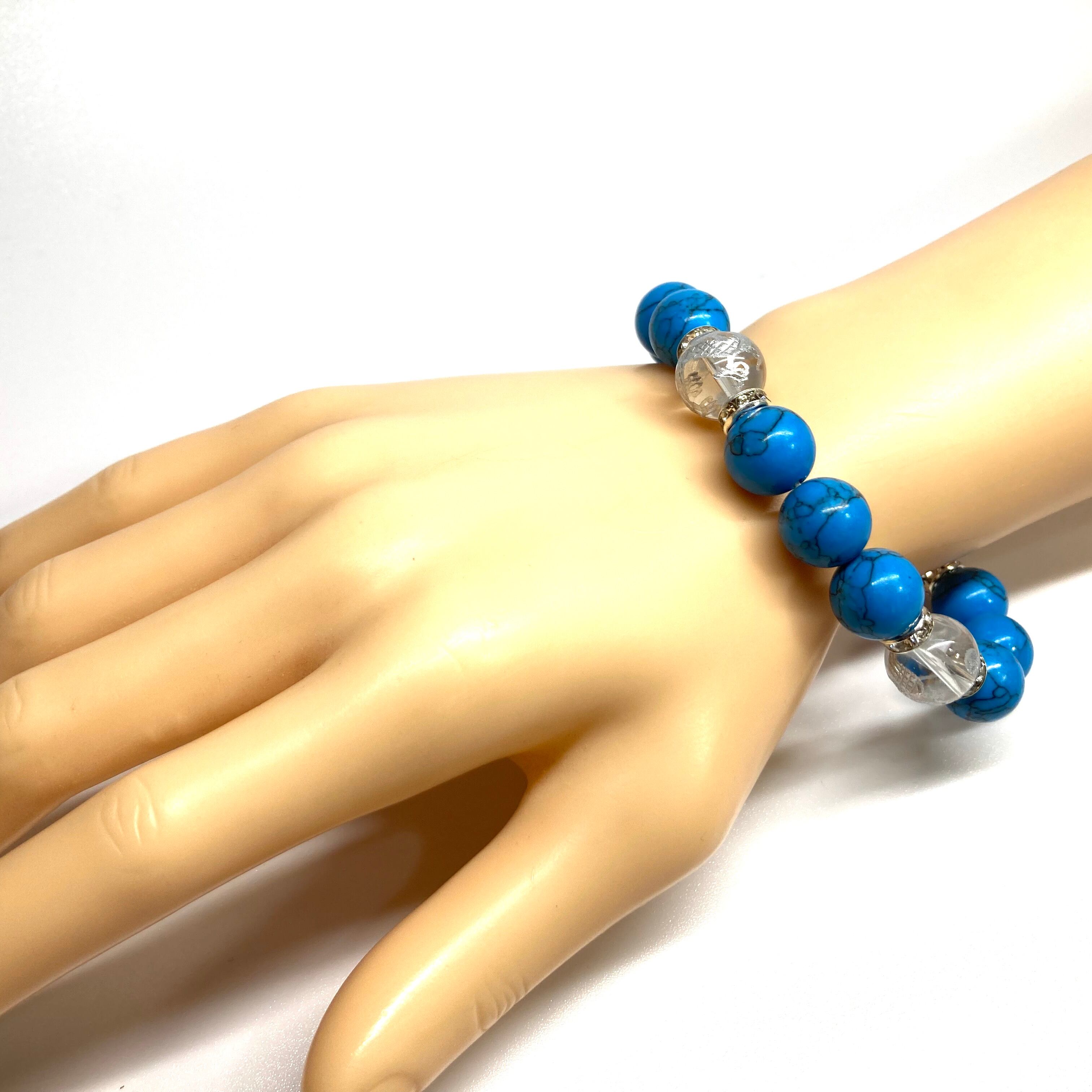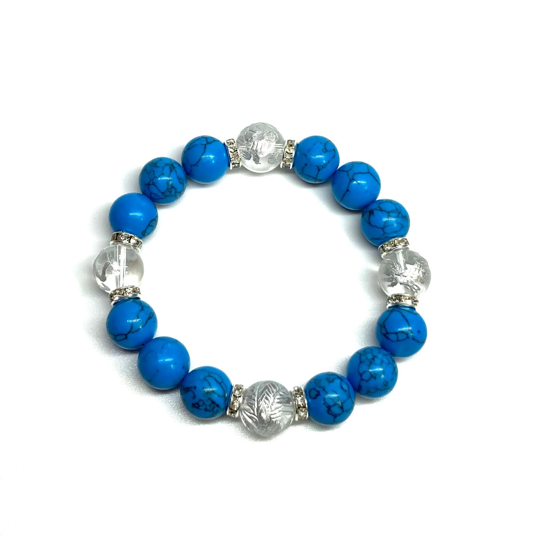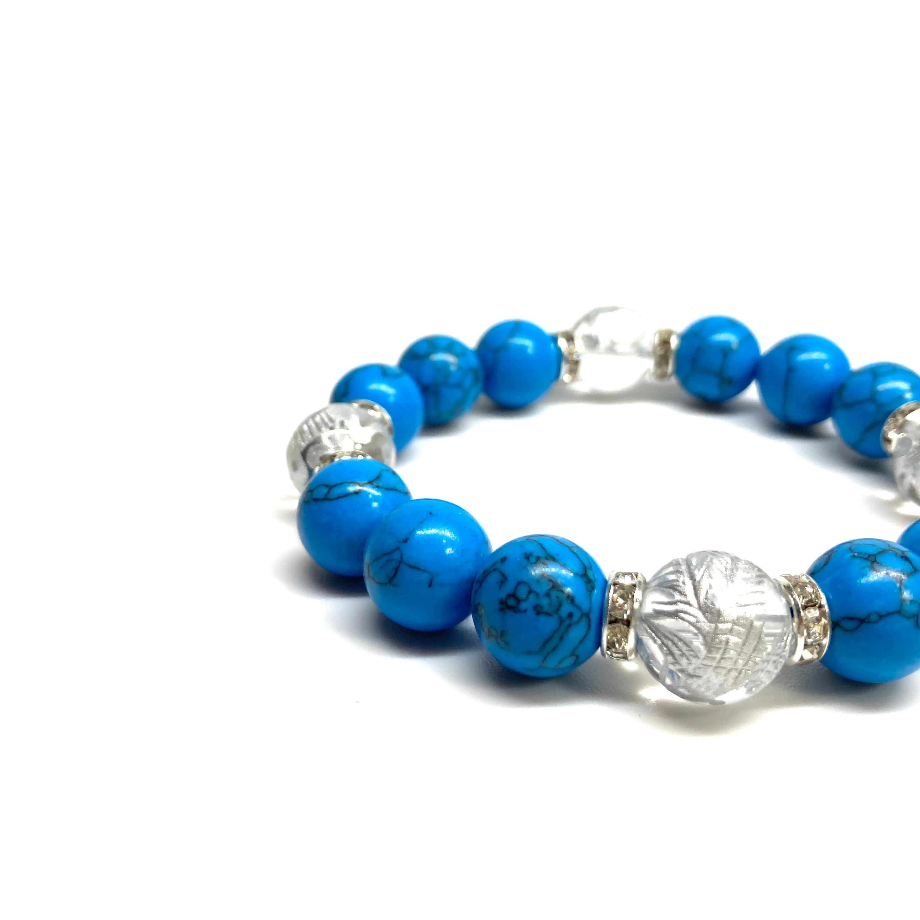 12mm 四神獣銀彫水晶×ターコイズ パワーストーン ブレスレット 運気上昇 開運 金運 健康運 厄除け お守り 青龍 白虎 玄武 朱雀 (シルバー)メンズ・レディース 男性・女性 数珠ブレス 開運 /1 ☆ | パワーストーン 天然石 Kinari&Co.