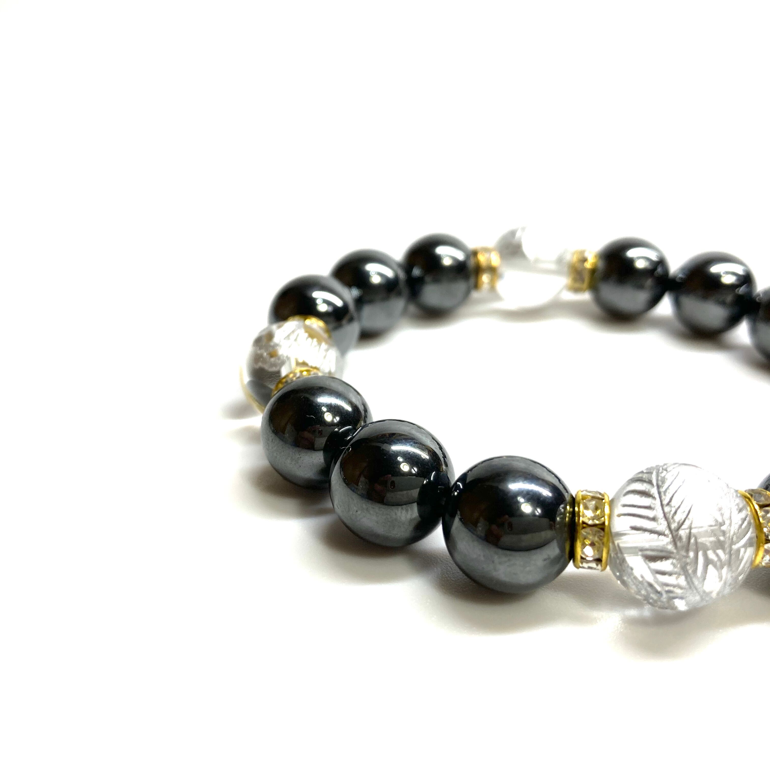 ご覧頂いているブレスレットは、四神獣銀彫水晶とヘマタイトを組み合わせたブレスレット。守り神である四神とパワーストーンの組み合わせで運気の流れを引き寄せる強運ブレスレットです。シンプルなデザインで男女問わず、年齢問わずご使用頂けるデザインなっております。シンプルなデザインは日常のアクセントとして、仕事やビジネスカジュアル、パーティーや特別なイベントなど様々なシーン活用できます。また、ちょっと贈り物にも最適なブレスレットになっております。四神獣を身につけて厄災から身を守り、多くの運気を呼び込まれてください。
