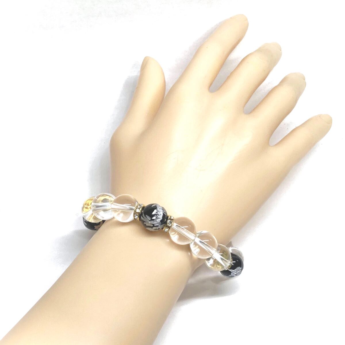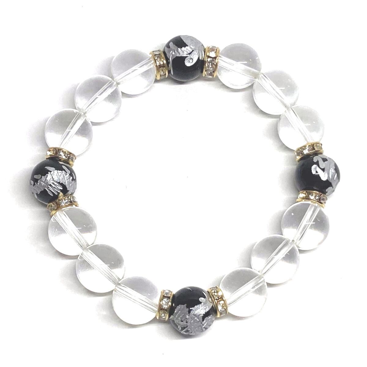 12mm 四神獣銀彫オニキス×水晶 パワーストーン ブレスレット天然石 運気上昇 開運 ☆ 金運 恋愛運 お守り 青龍 白虎 玄武 朱雀 4月誕生石 (ゴールド)メンズ・レディース 男性・女性 数珠ブレス 開運 ☆
