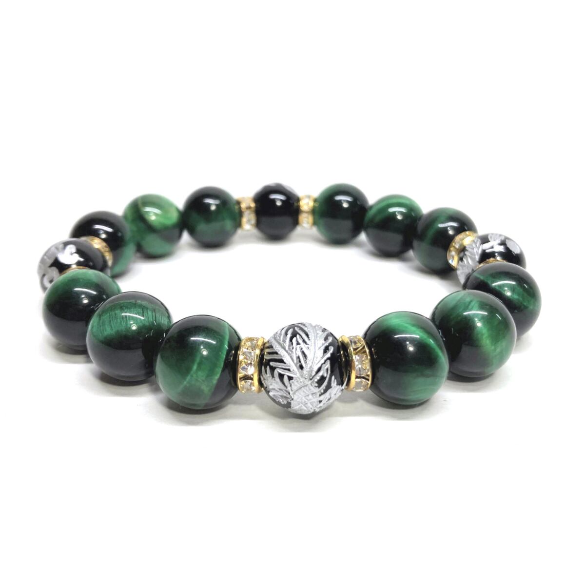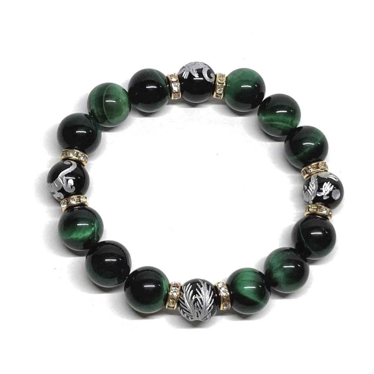 12mm 四神獣銀彫オニキス×グリーンタイガーアイ パワーストーン ブレスレット天然石 運気上昇 金運 健康運 お守り 青龍 白虎 玄武 朱雀 (ゴールド)メンズ・レディース 男性・女性 数珠ブレス 開運 ☆ | パワーストーン 天然石 Kinari&Co.