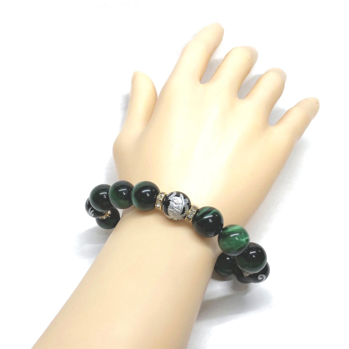 ご覧頂いているブレスレットは、四神獣銀彫オニキスとグリーンタイガーアイを組み合わせたブレスレット。守り神である四神とパワーストーンの組み合わせで運気の流れを引き寄せる強運ブレスレットです。シンプルなデザインで男女問わず、年齢問わずご使用頂けるデザインなっております。シンプルなデザインは日常のアクセントとして、仕事やビジネスカジュアル、パーティーや特別なイベントなど様々なシーン活用できます。また、ちょっと贈り物にも最適なブレスレットになっております。四神獣を身につけて厄災から身を守り、多くの運気を呼び込まれてください。