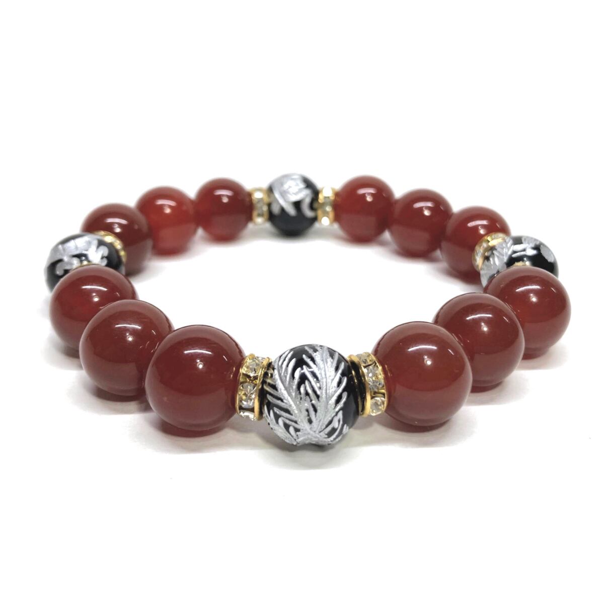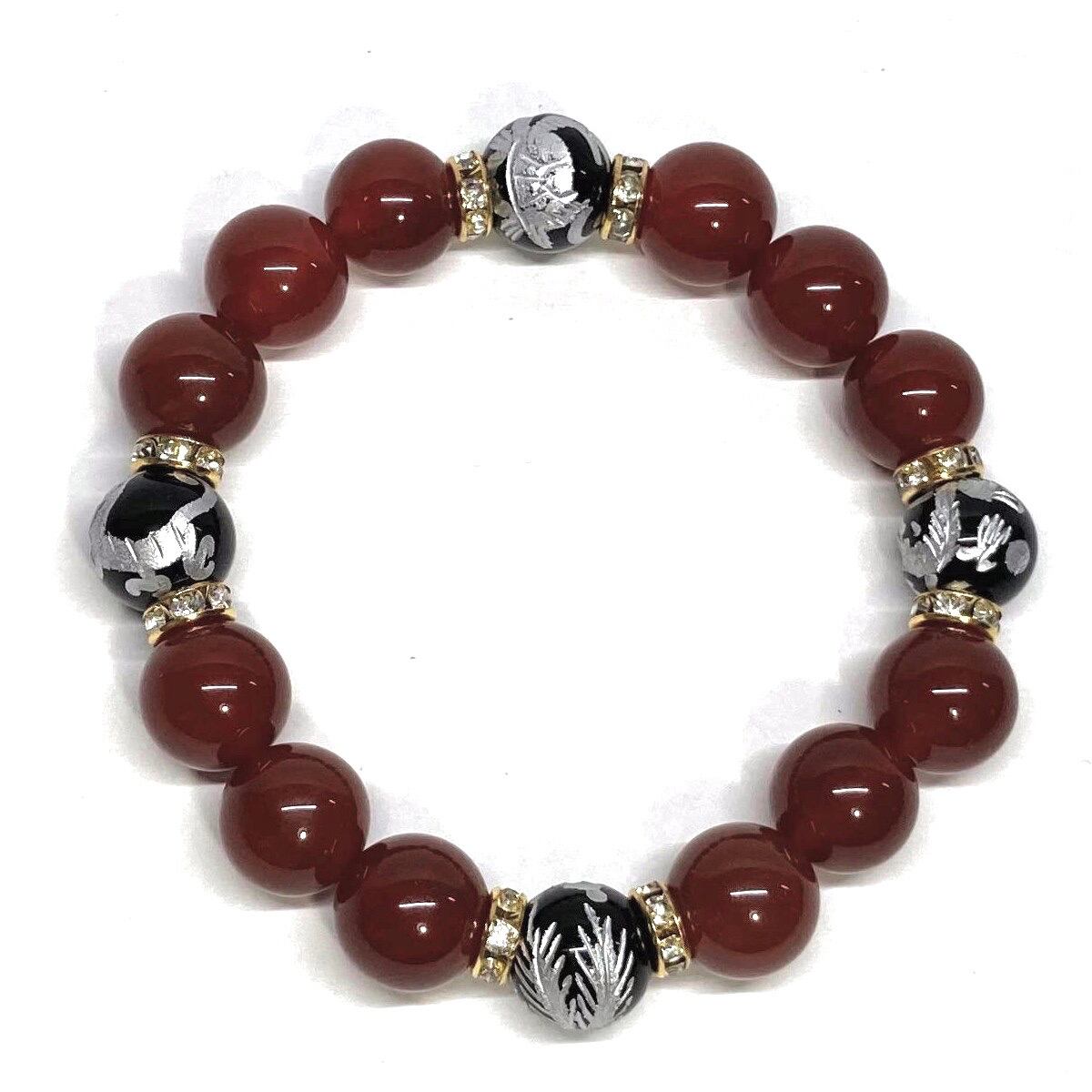 12mm 四神獣銀彫オニキス×赤瑪瑙 パワーストーン ブレスレット天然石 運気上昇 開運 ☆ 金運 ギャンブル運 お守り 青龍 白虎 玄武 朱雀 (ゴールド)メンズ・レディース 男性・女性 数珠ブレス 開運 ☆ | パワーストーン 天然石 Kinari&Co.