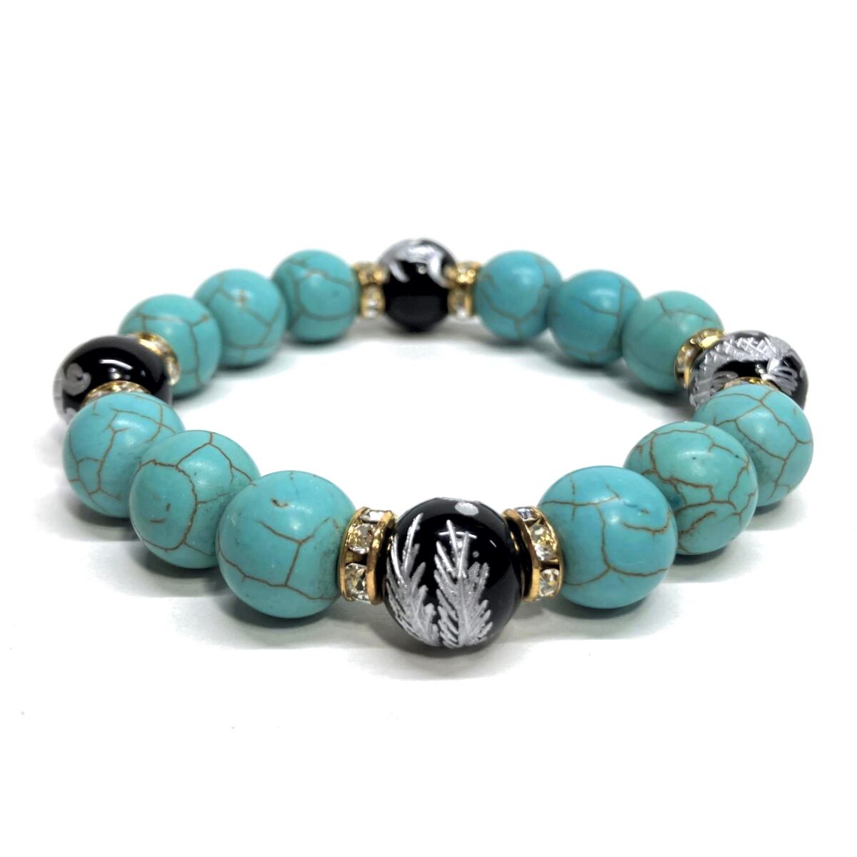 ご覧頂いているブレスレットは、四神獣銀彫オニキスとターコイズを組み合わせたブレスレット。守り神である四神とパワーストーンの組み合わせで運気の流れを引き寄せる強運ブレスレットです。シンプルなデザインで男女問わず、年齢問わずご使用頂けるデザインなっております。シンプルなデザインは日常のアクセントとして、仕事やビジネスカジュアル、パーティーや特別なイベントなど様々なシーン活用できます。また、ちょっと贈り物にも最適なブレスレットになっております。四神獣を身につけて厄災から身を守り、多くの運気を呼び込まれてください。