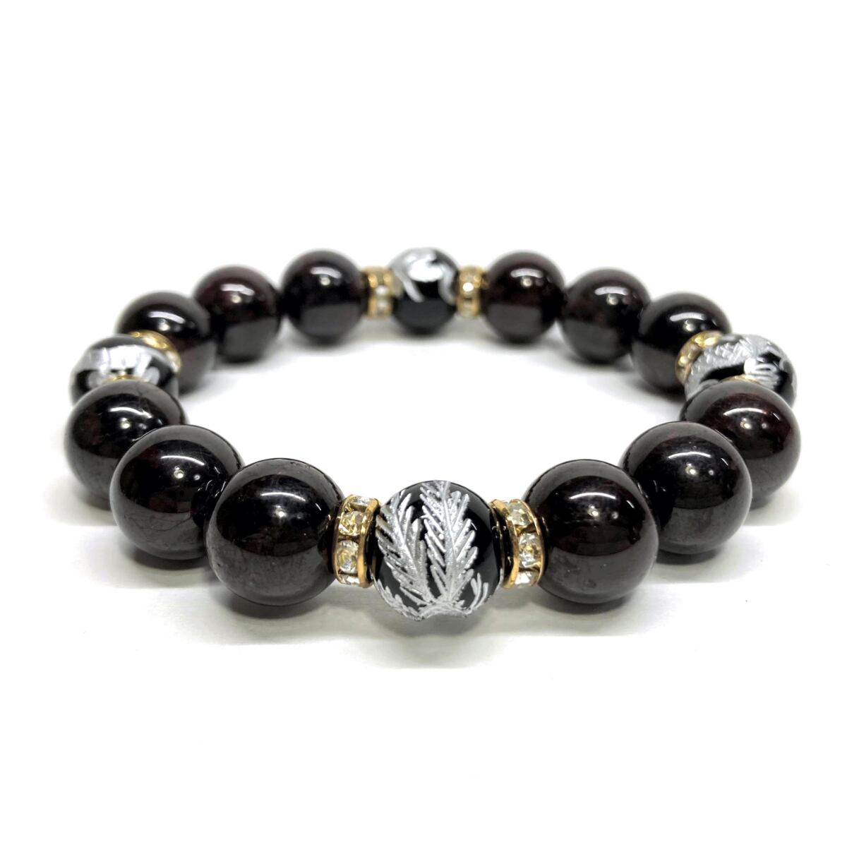 ご覧頂いているブレスレットは、四神獣銀彫オニキスとガーネットを組み合わせたブレスレット。守り神である四神とパワーストーンの組み合わせで運気の流れを引き寄せる強運ブレスレットです。シンプルなデザインで男女問わず、年齢問わずご使用頂けるデザインなっております。シンプルなデザインは日常のアクセントとして、仕事やビジネスカジュアル、パーティーや特別なイベントなど様々なシーン活用できます。また、ちょっと贈り物にも最適なブレスレットになっております。四神獣を身につけて厄災から身を守り、多くの運気を呼び込まれてください。