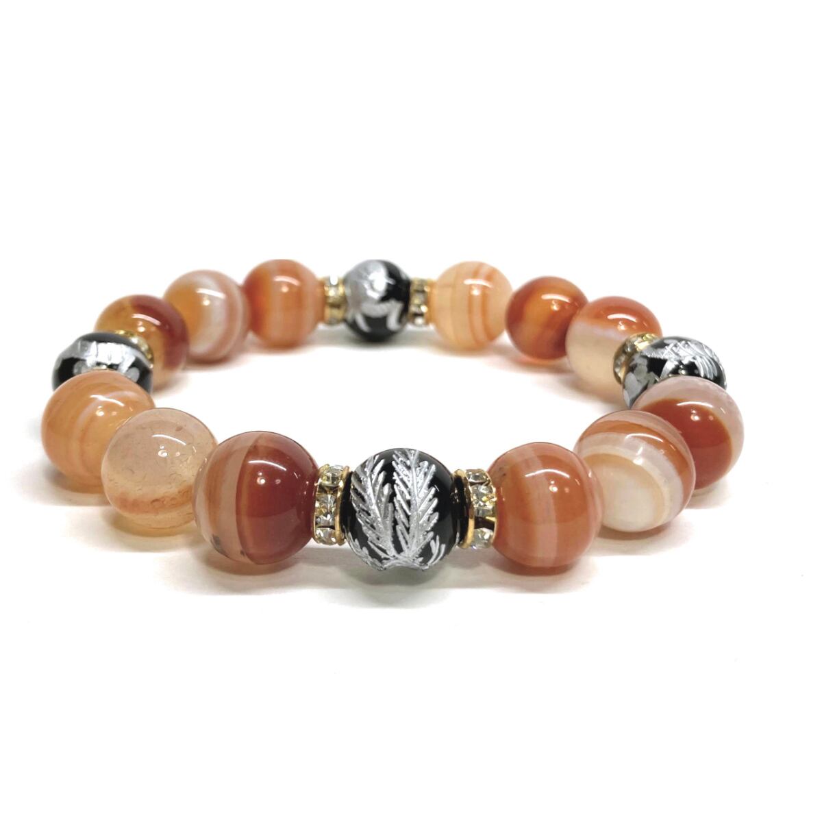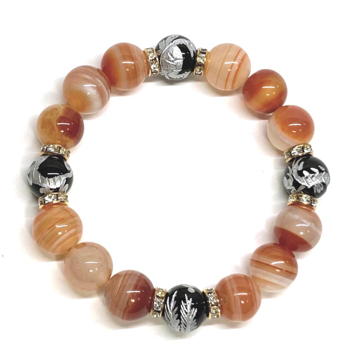 12mm 四神獣銀彫オニキス×カーネリアン・サードニクス パワーストーン ブレスレット天然石 レッド天眼石 お守り 青龍 白虎 玄武 朱雀 (ゴールド)メンズ・レディース 男性・女性 数珠ブレス 開運 ☆ | パワーストーン 天然石 Kinari&Co.