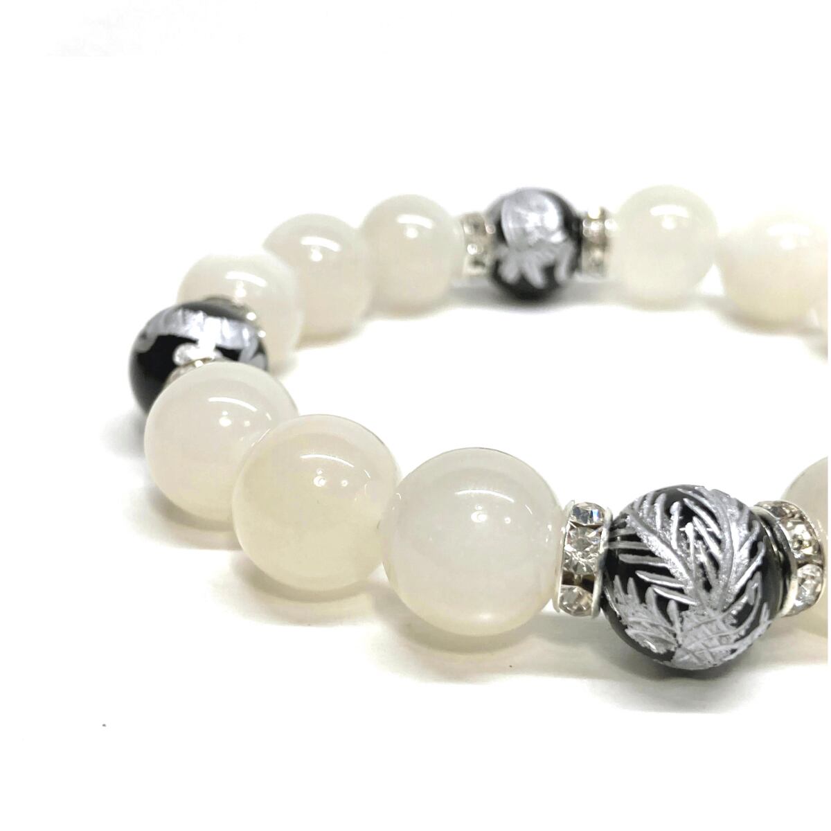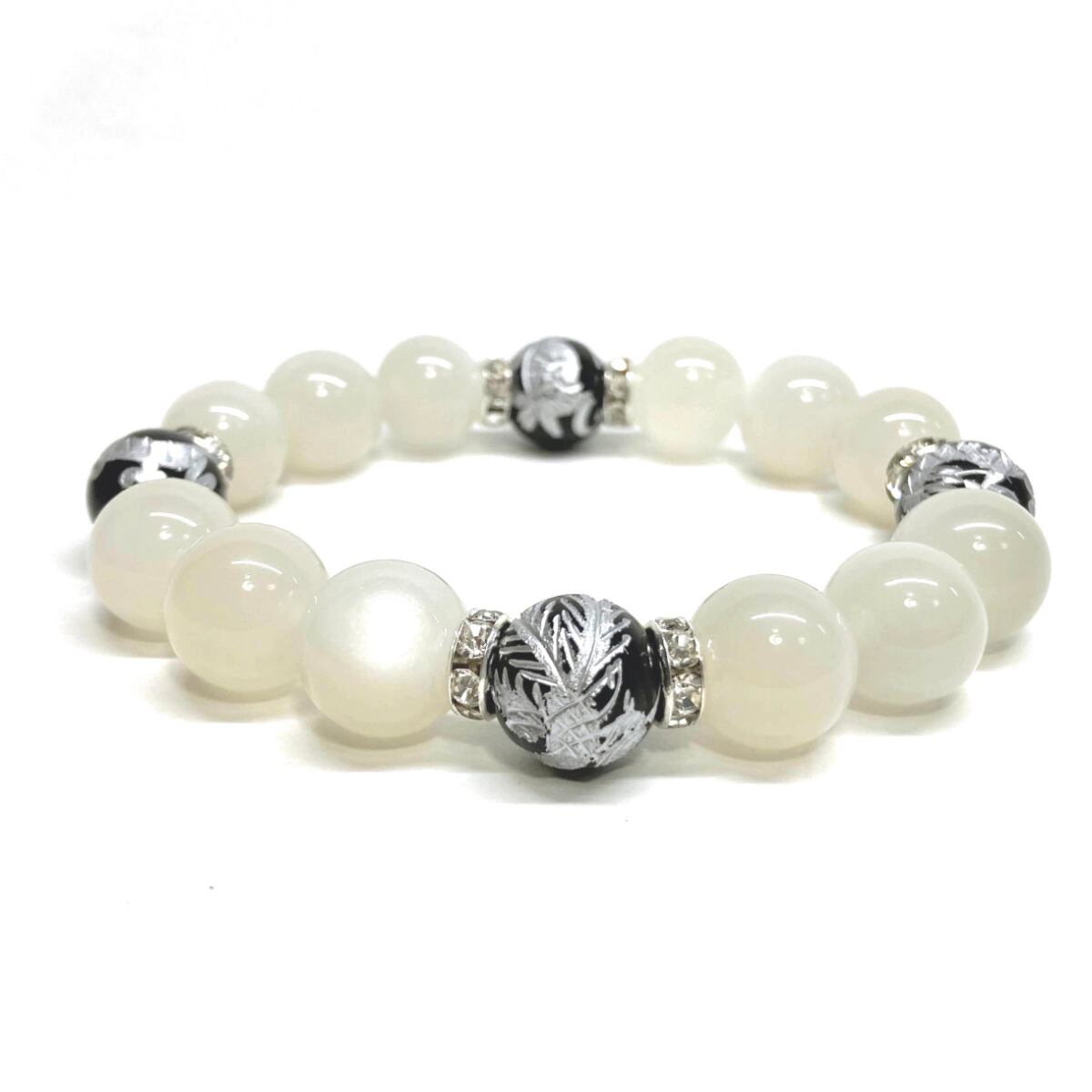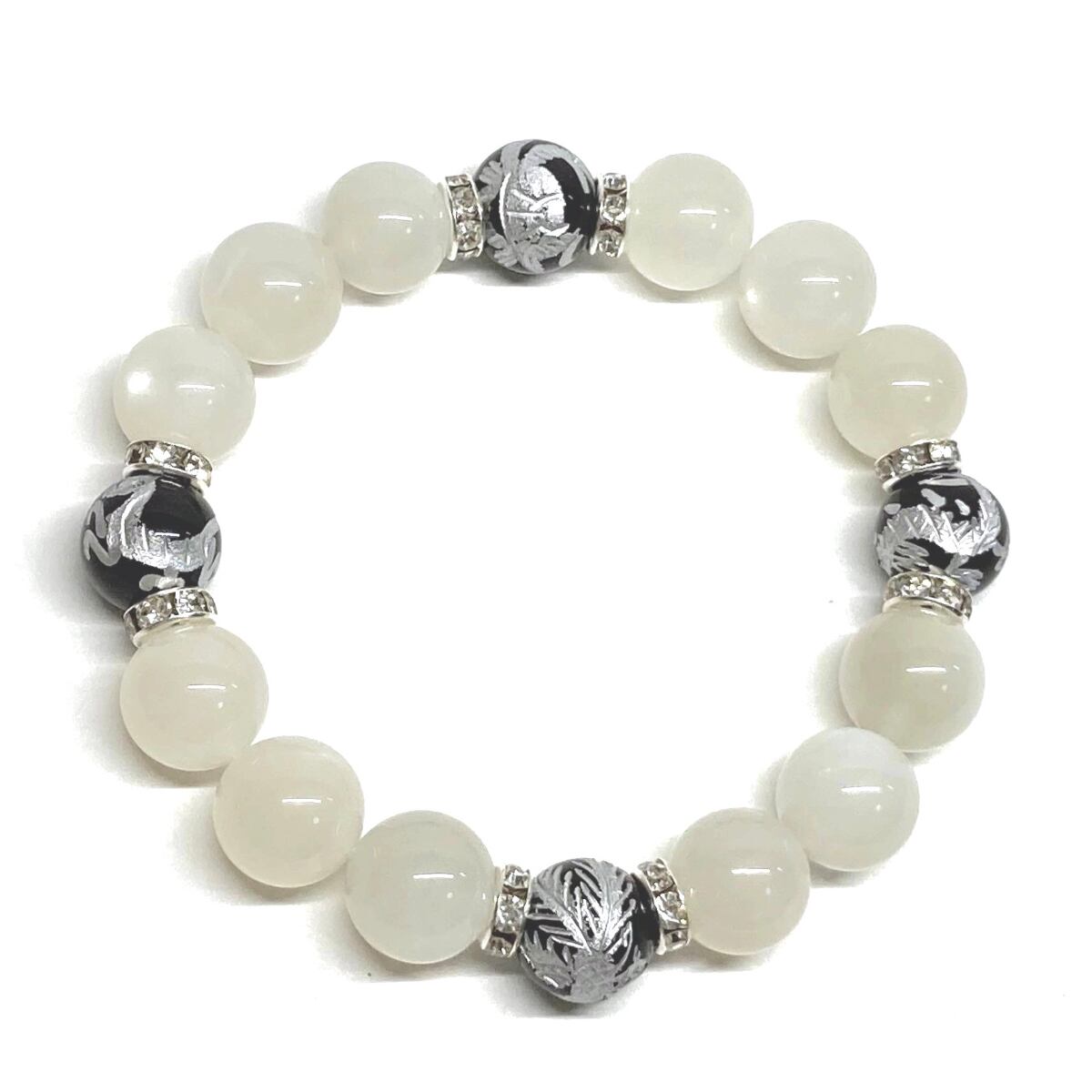 12mm 四神獣銀彫オニキス×ムーンストーン パワーストーン ブレスレット天然石 運気上昇 開運 ☆ お守り 青龍 白虎 玄武 朱雀 6月誕生石 (シルバー)メンズ・レディース 男性・女性 数珠ブレス 開運 ☆ | パワーストーン 天然石 Kinari&Co.