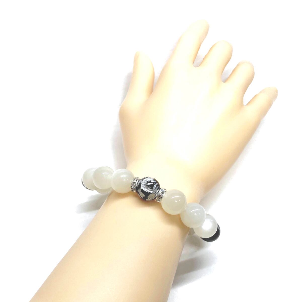 ご覧頂いているブレスレットは、四神獣銀彫オニキスとムーンストーンを組み合わせたブレスレット。守り神である四神とパワーストーンの組み合わせで運気の流れを引き寄せる強運ブレスレットです。シンプルなデザインで男女問わず、年齢問わずご使用頂けるデザインなっております。シンプルなデザインは日常のアクセントとして、仕事やビジネスカジュアル、パーティーや特別なイベントなど様々なシーン活用できます。また、ちょっと贈り物にも最適なブレスレットになっております。四神獣を身につけて厄災から身を守り、多くの運気を呼び込まれてください。