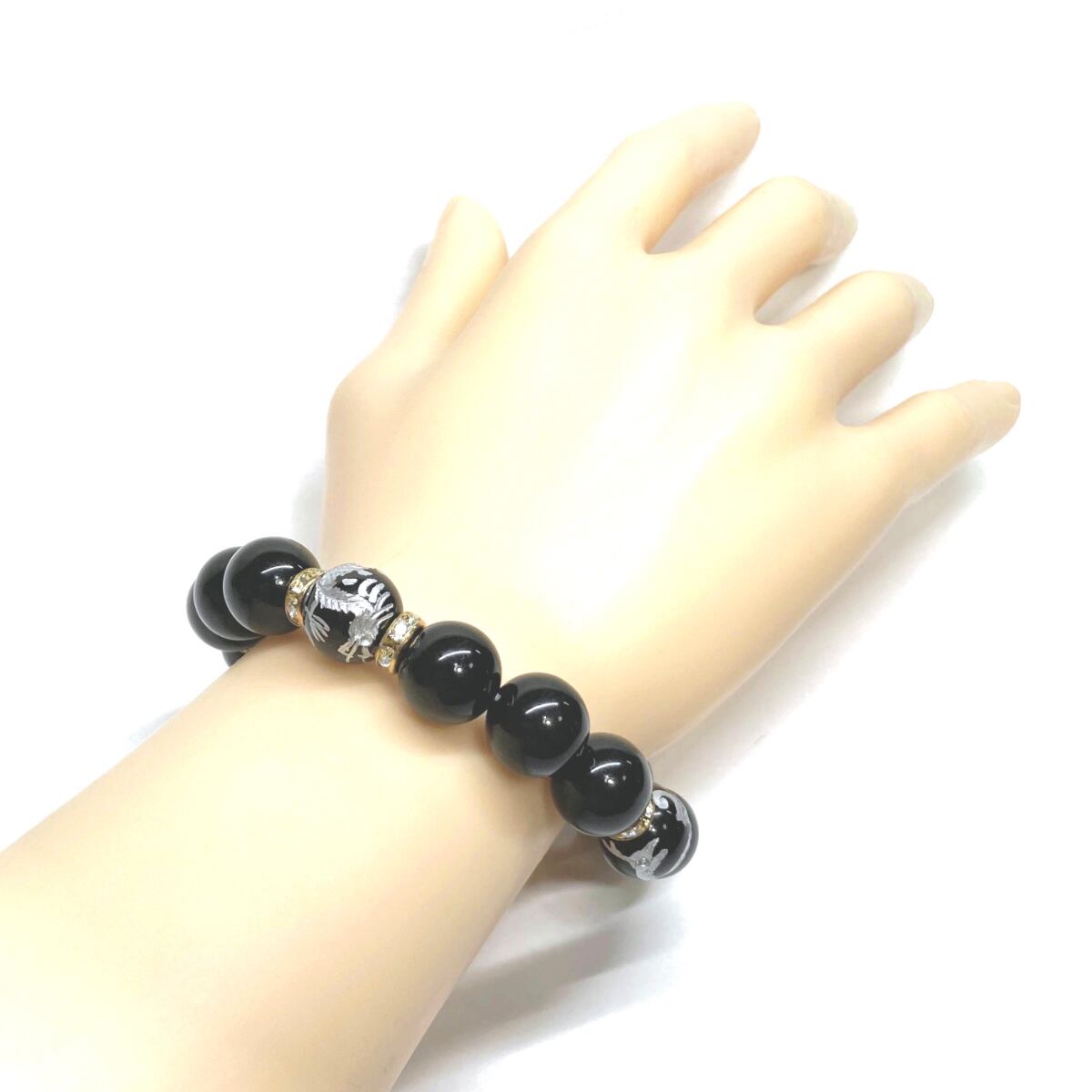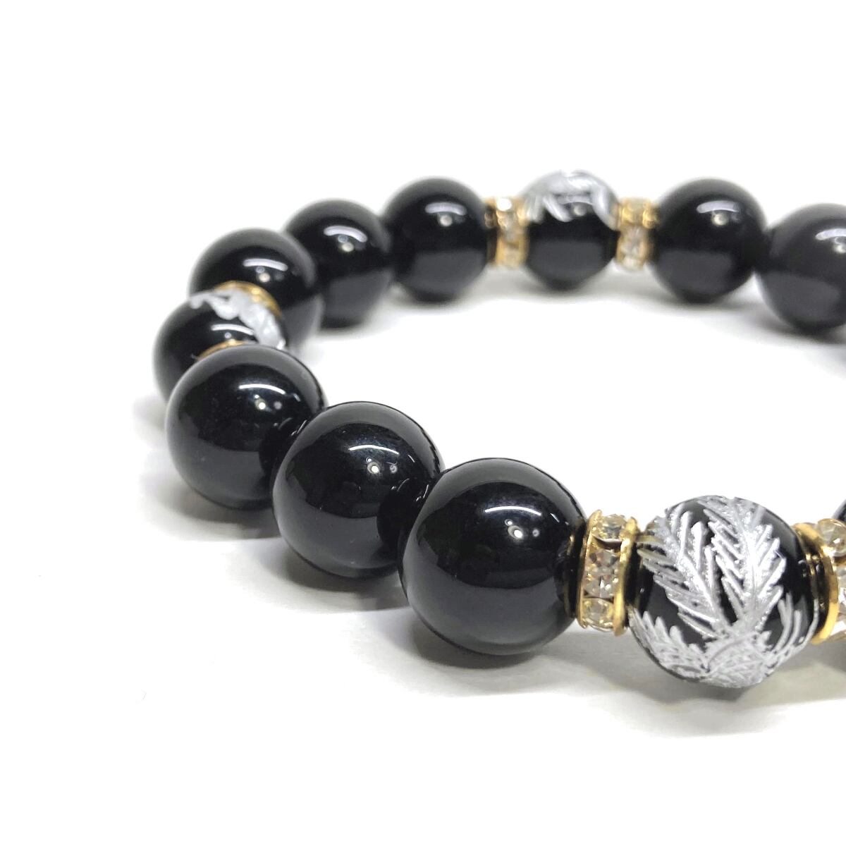 12mm 四神獣銀彫オニキス×モリオン パワーストーン ブレスレット天然石 運気上昇 開運 ☆ 金運 健康運 厄払い お守り 青龍 白虎 玄武 朱雀 (ゴールド)メンズ・レディース 男性・女性 数珠ブレス 開運 ☆ | パワーストーン 天然石 Kinari&Co.
