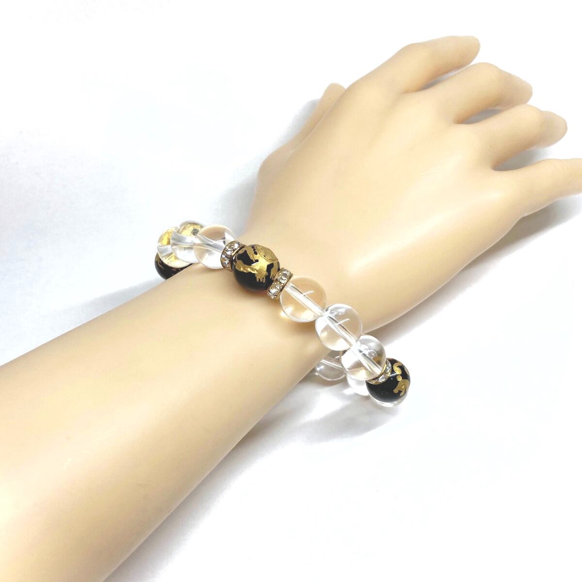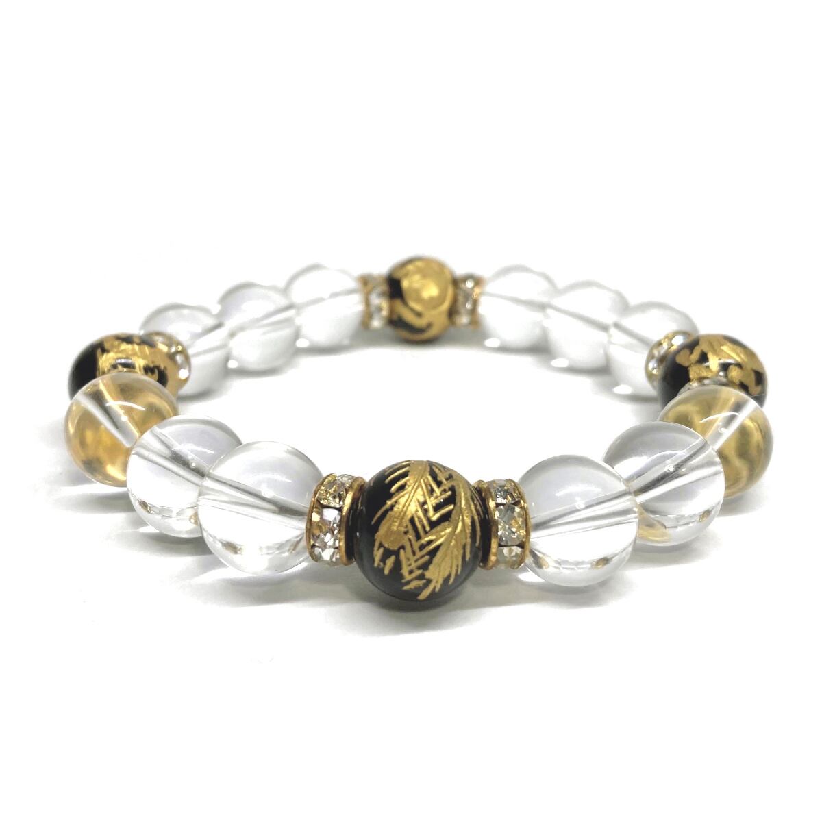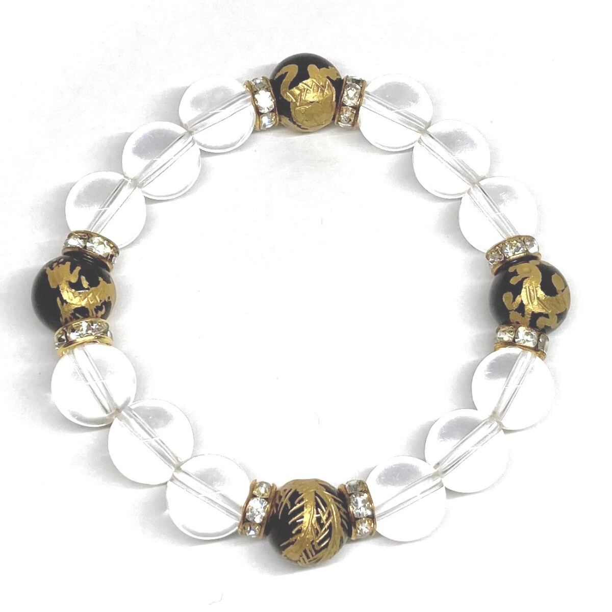 12mm 四神獣金彫オニキス×水晶 パワーストーン ブレスレット天然石 運気上昇 開運 ☆ 金運 恋愛運 お守り 青龍 白虎 玄武 朱雀 4月誕生石 (ゴールド)メンズ・レディース 男性・女性 数珠ブレス 開運 ☆