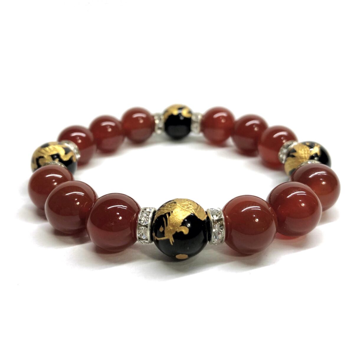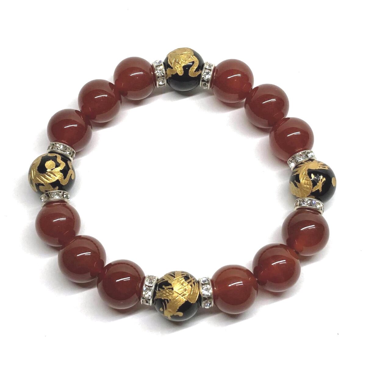 12mm 四神獣金彫オニキス×赤瑪瑙 パワーストーン ブレスレット天然石 運気上昇 開運 ☆ 金運 ギャンブル運 お守り 青龍 白虎 玄武 朱雀 (シルバー)メンズ・レディース 男性・女性 数珠ブレス 開運 ☆ | パワーストーン 天然石 Kinari&Co.