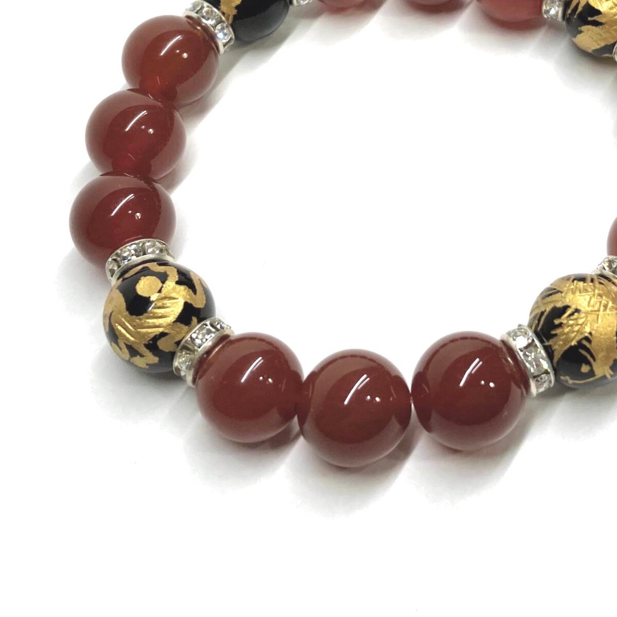 ご覧頂いているブレスレットは、四神獣金彫オニキスと赤瑪瑙を組み合わせたブレスレット。守り神である四神とパワーストーンの組み合わせで運気の流れを引き寄せる強運ブレスレットです。シンプルなデザインで男女問わず、年齢問わずご使用頂けるデザインなっております。シンプルなデザインは日常のアクセントとして、仕事やビジネスカジュアル、パーティーや特別なイベントなど様々なシーン活用できます。また、ちょっと贈り物にも最適なブレスレットになっております。四神獣を身につけて厄災から身を守り、多くの運気を呼び込まれてください。