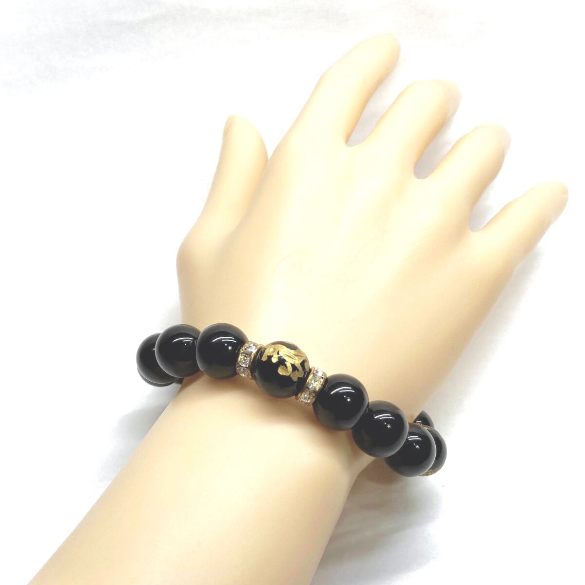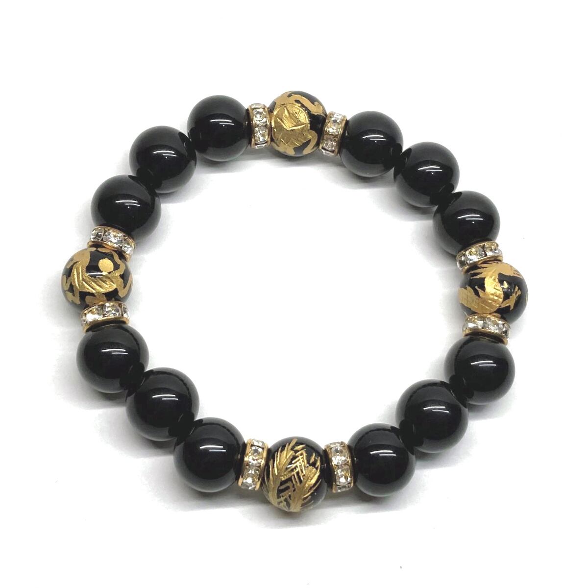 12mm 四神獣金彫オニキス×オニキス パワーストーン ブレスレット天然石 運気上昇 開運 ☆ 金運 健康運 厄払い お守り 青龍 白虎 玄武 朱雀 (ゴールド)メンズ・レディース 男性・女性 数珠ブレス 開運 ☆ | パワーストーン 天然石 Kinari&Co.