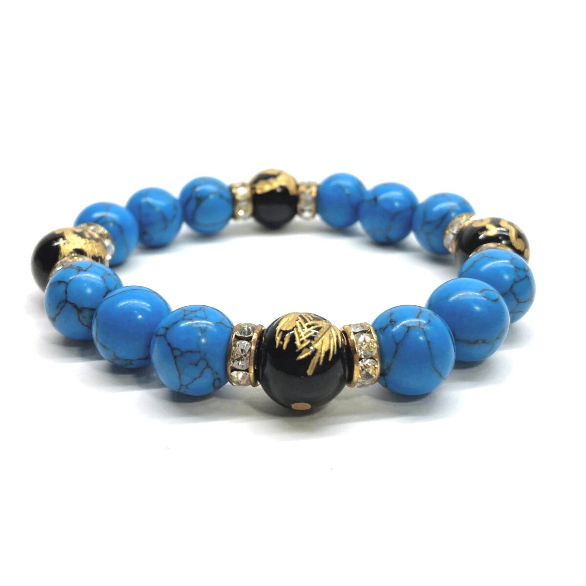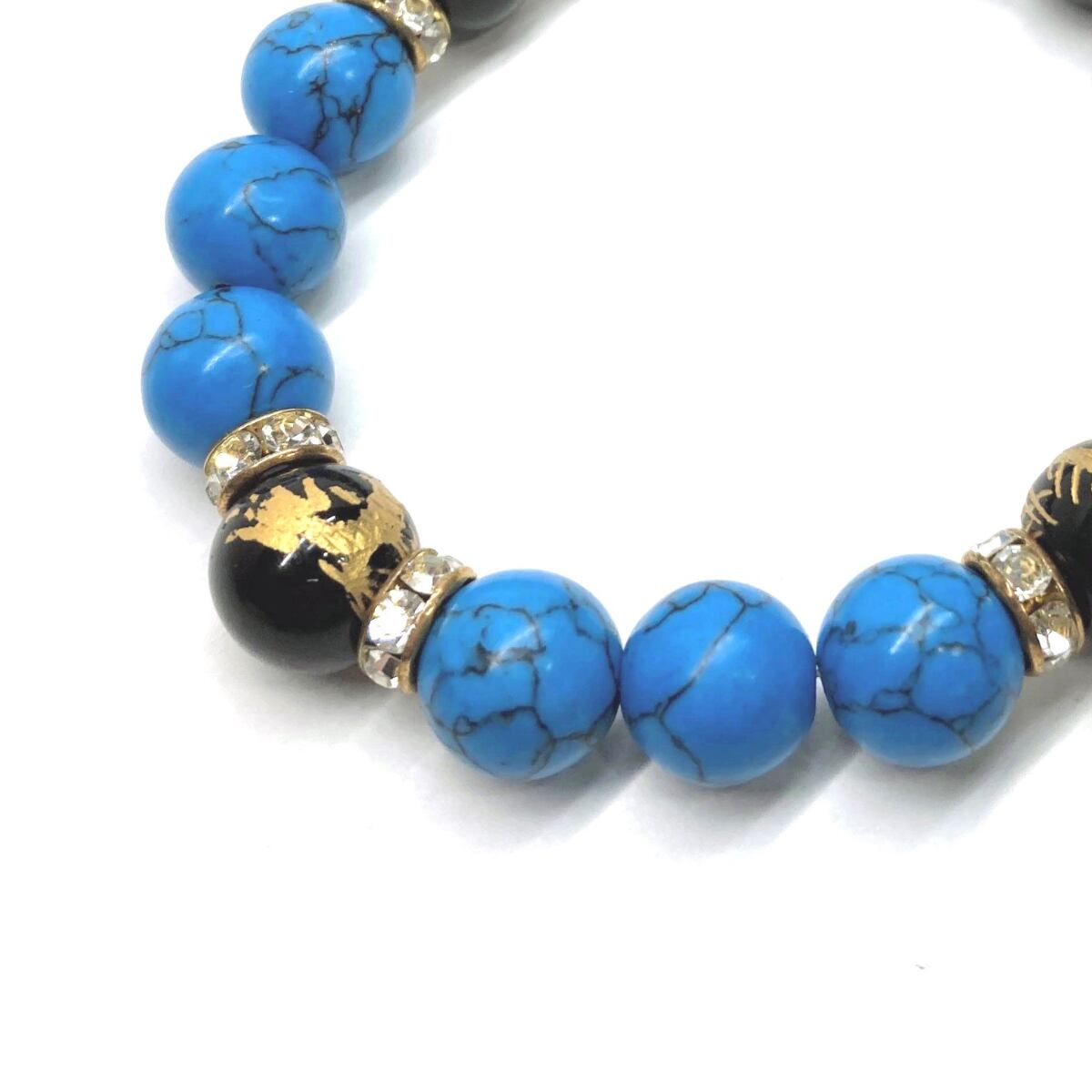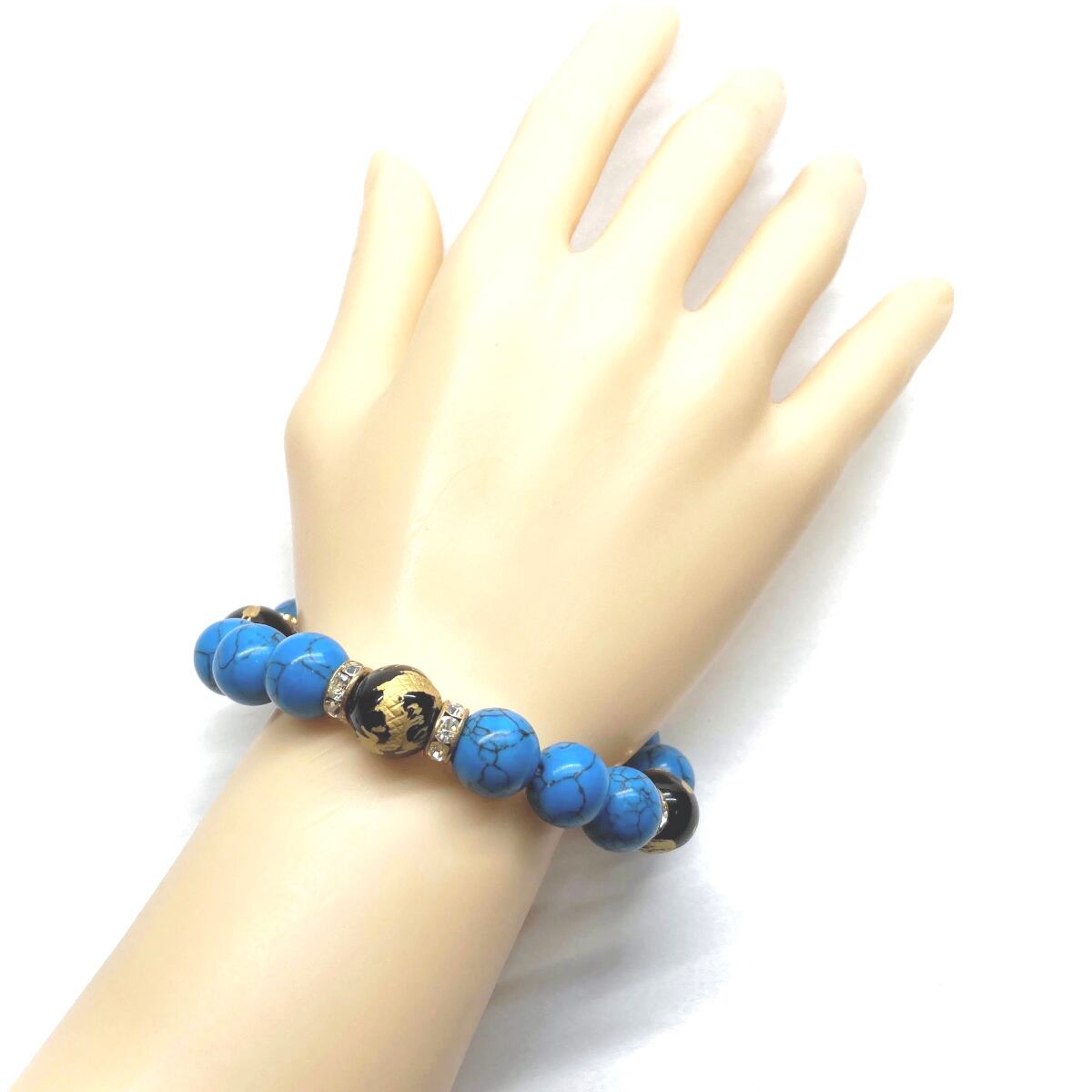 12mm 四神獣金彫オニキス×ターコイズ パワーストーン ブレスレット 運気上昇 開運 金運 健康運 厄除け お守り 青龍 白虎 玄武 朱雀 (ゴールド)メンズ・レディース 男性・女性 数珠ブレス 開運 /1 ☆