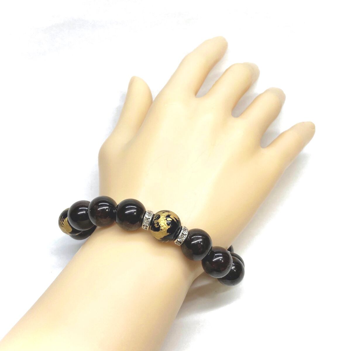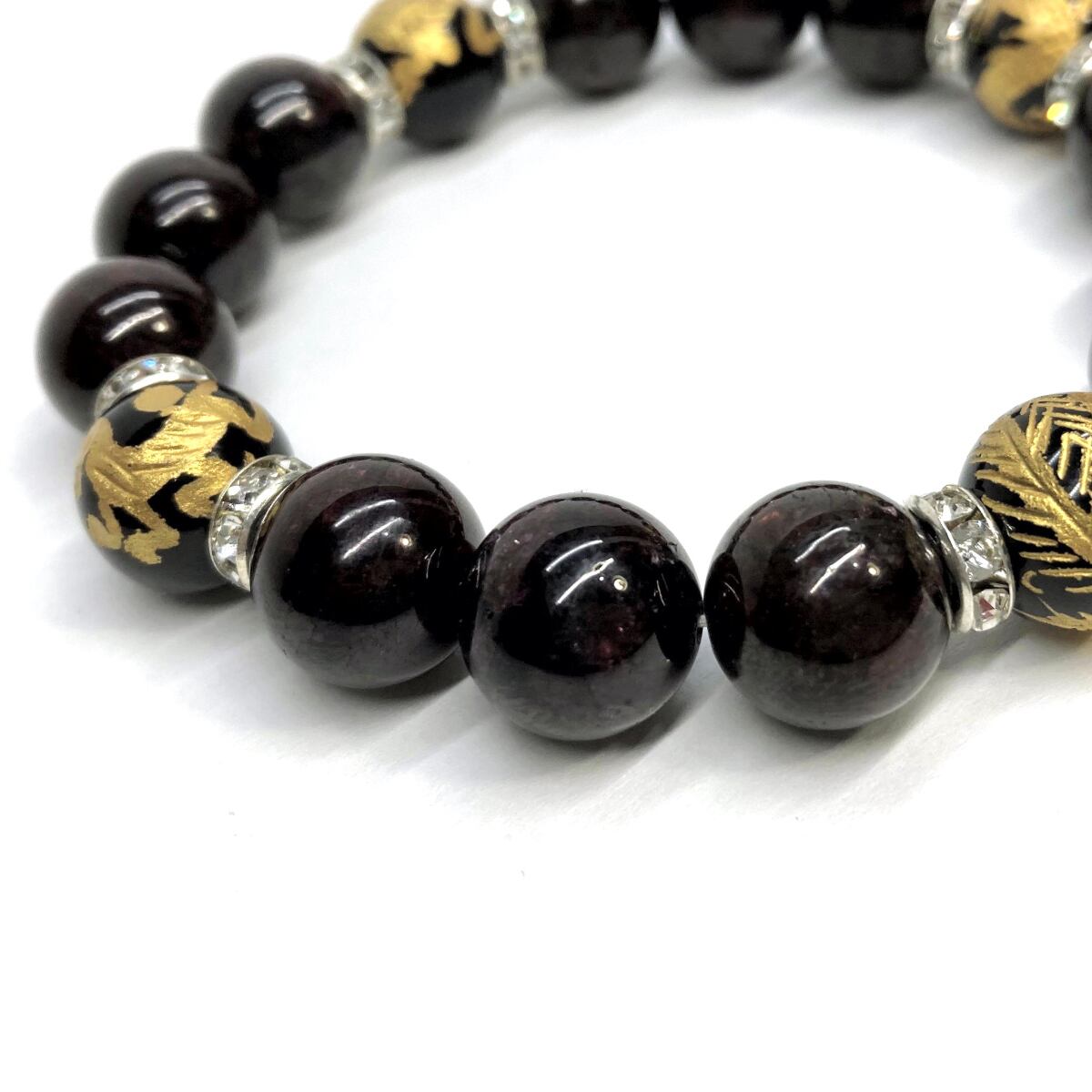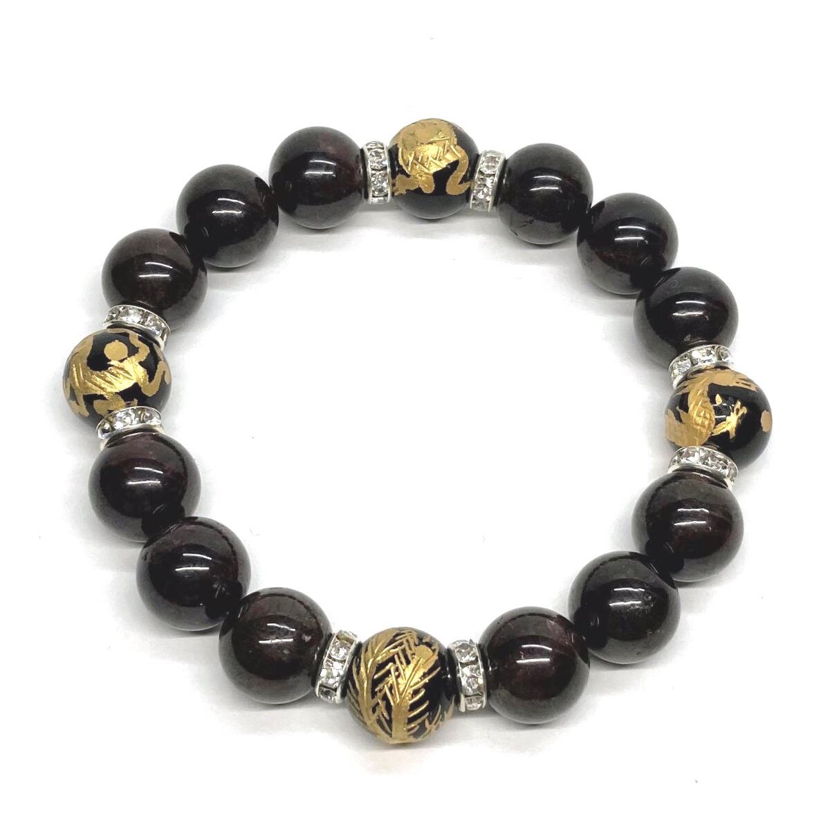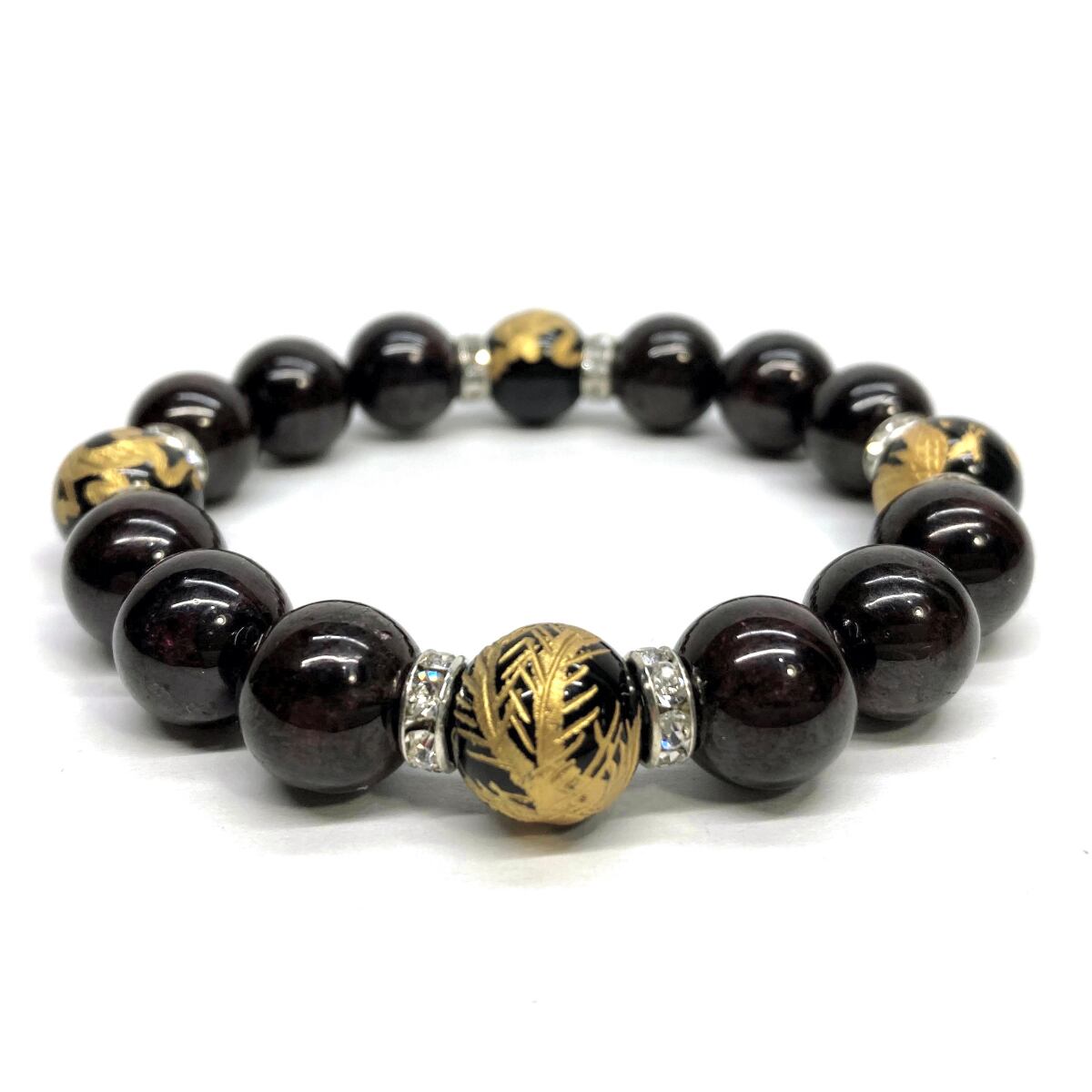 12mm 四神獣金彫オニキス×ガーネット パワーストーン ブレスレット天然石 運気上昇 開運 ☆ 恋愛運 お守り 青龍 白虎 玄武 朱雀 1月誕生石 (シルバー)メンズ・レディース 男性・女性 数珠ブレス 開運 ☆ | パワーストーン 天然石 Kinari&Co.