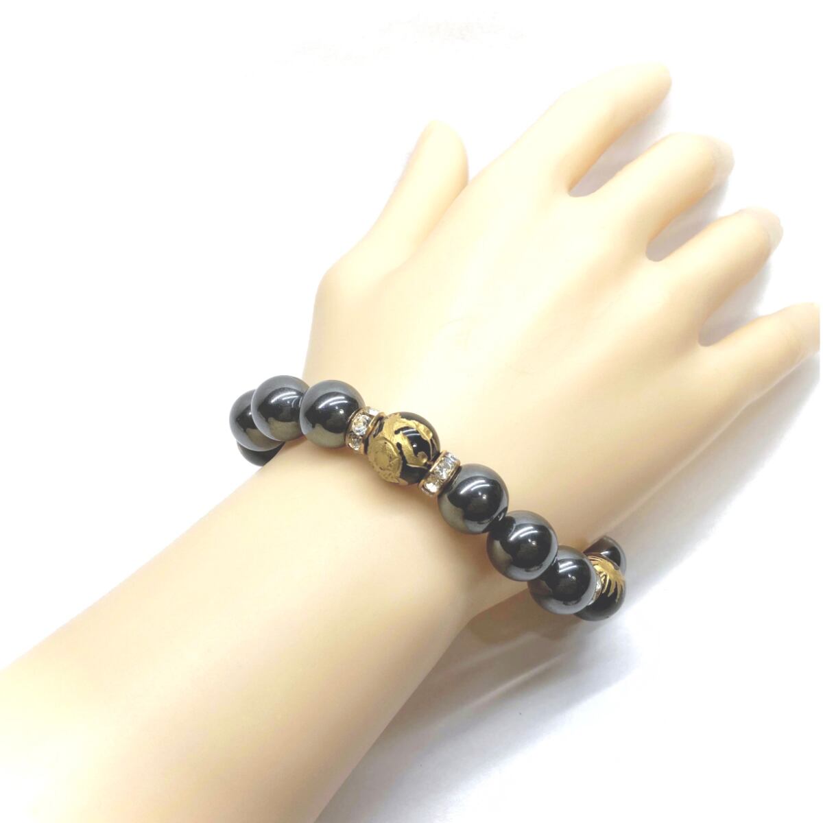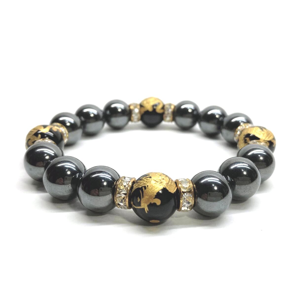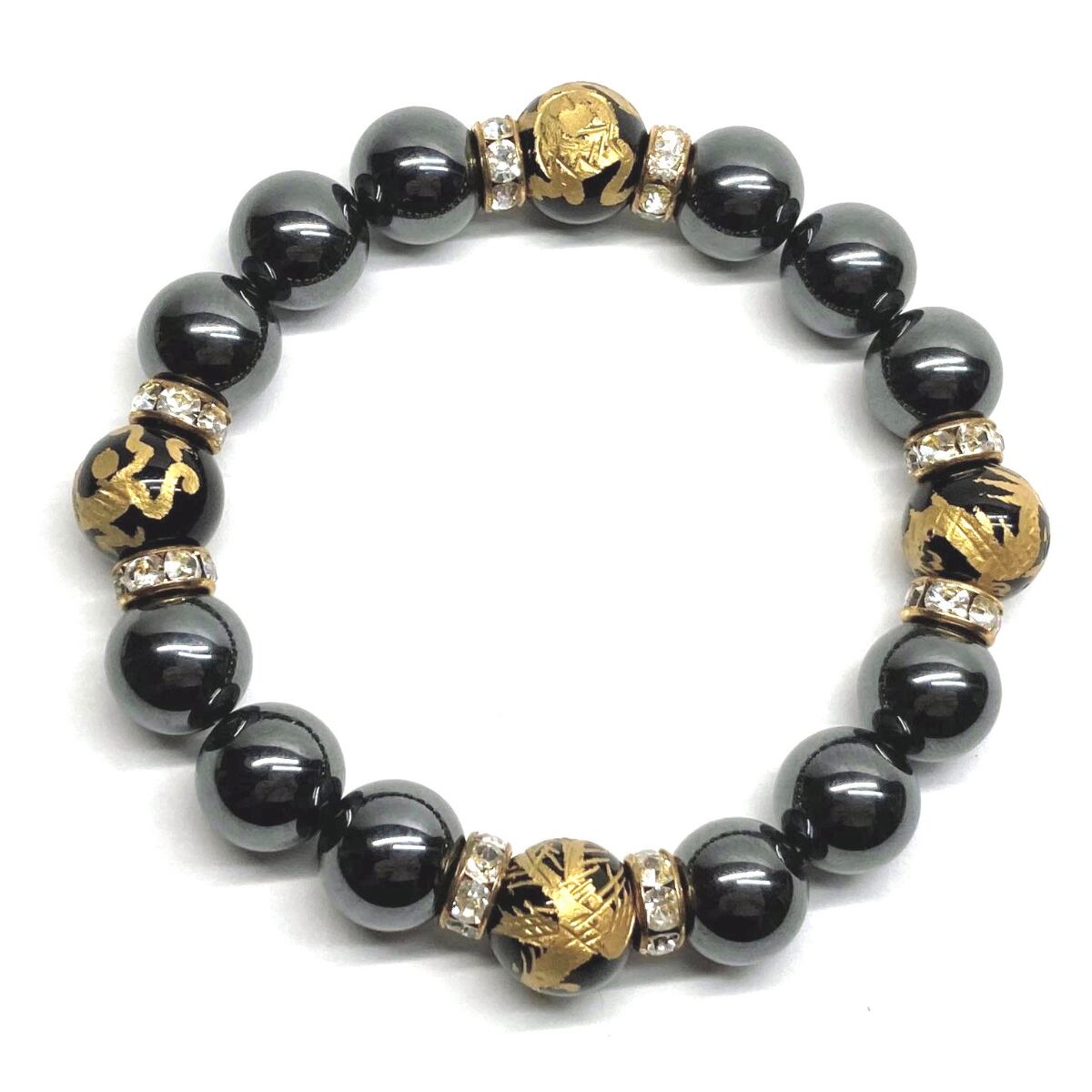 12mm 四神獣金彫オニキス×ヘマタイト パワーストーン ブレスレット天然石 運気上昇 開運 ☆ 健康運 厄払い お守り 青龍 白虎 玄武 朱雀 (ゴールド)メンズ・レディース 男性・女性 数珠ブレス 開運 ☆ | パワーストーン 天然石 Kinari&Co.