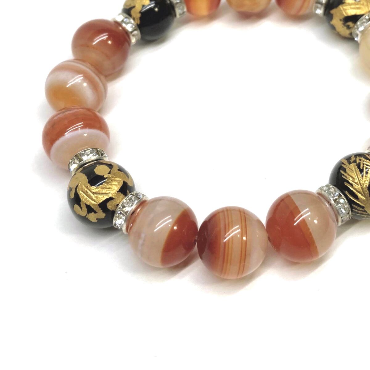 12mm 四神獣金彫オニキス×カーネリアン・サードニクス パワーストーン ブレスレット天然石 レッド天眼石 お守り 青龍 白虎 玄武 朱雀 (シルバー)メンズ・レディース 男性・女性 数珠ブレス 開運 ☆ | パワーストーン 天然石 Kinari&Co.