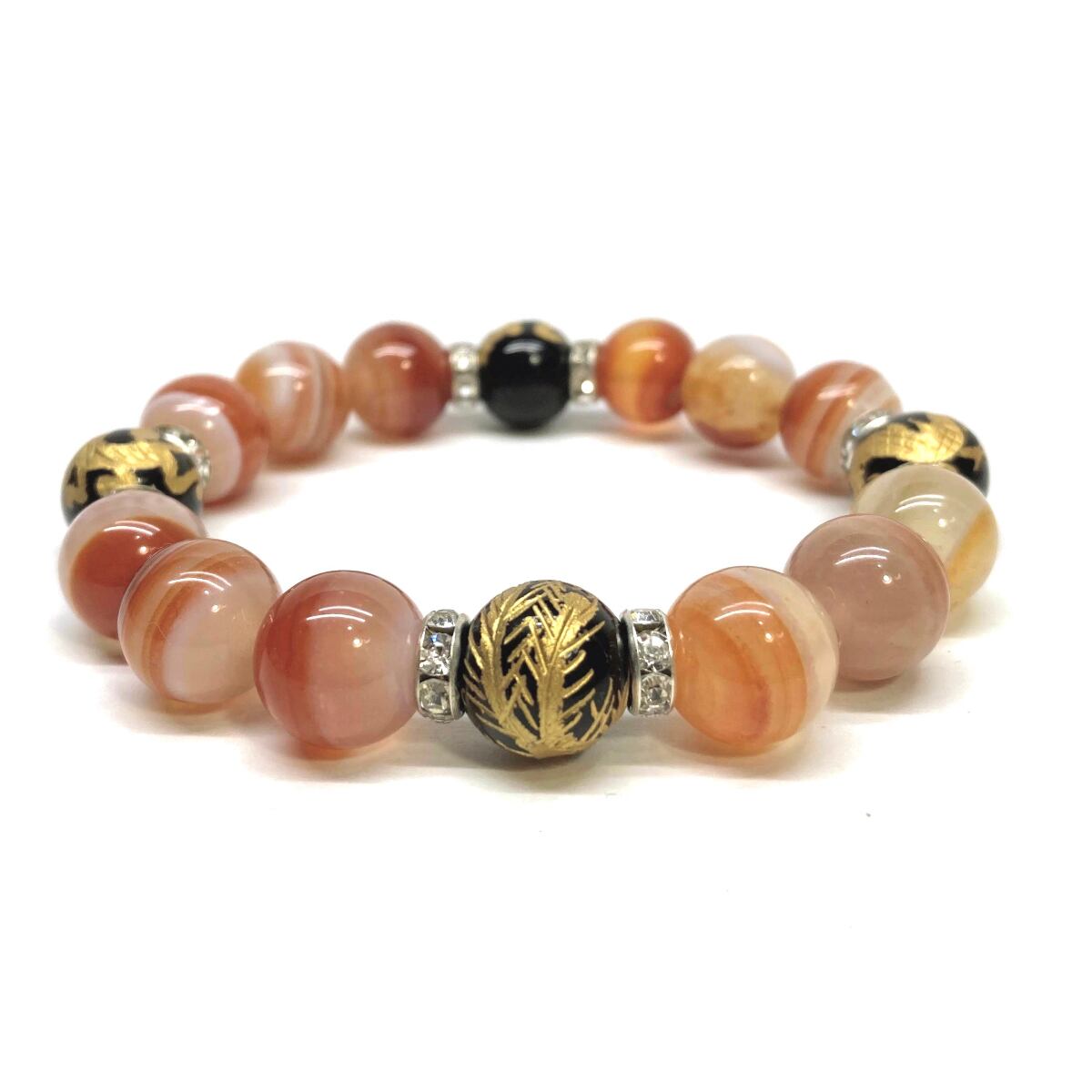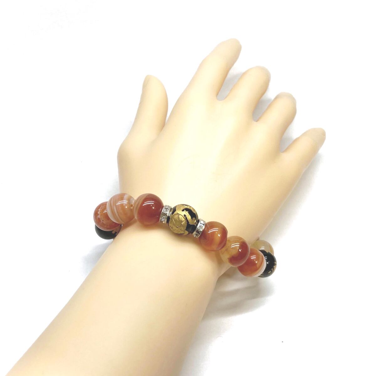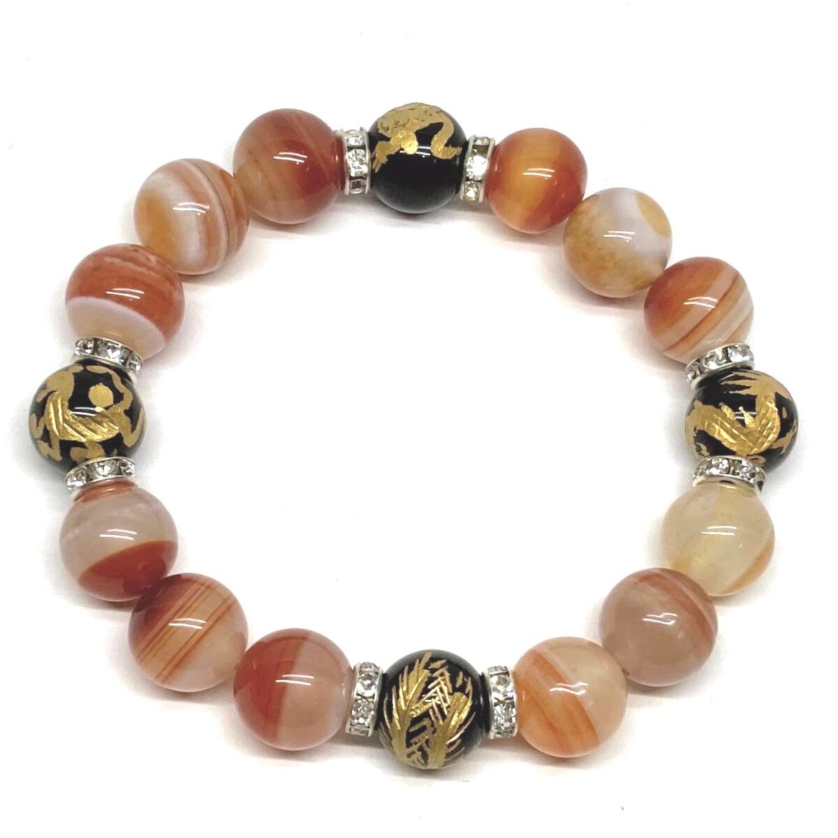 ご覧頂いているブレスレットは、四神獣金彫オニキスとカーネリアン・サードニクス(レッド天眼石)を組み合わせたブレスレット。守り神である四神とパワーストーンの組み合わせで運気の流れを引き寄せる強運ブレスレットです。シンプルなデザインで男女問わず、年齢問わずご使用頂けるデザインなっております。シンプルなデザインは日常のアクセントとして、仕事やビジネスカジュアル、パーティーや特別なイベントなど様々なシーン活用できます。また、ちょっと贈り物にも最適なブレスレットになっております。四神獣を身につけて厄災から身を守り、多くの運気を呼び込まれてください。