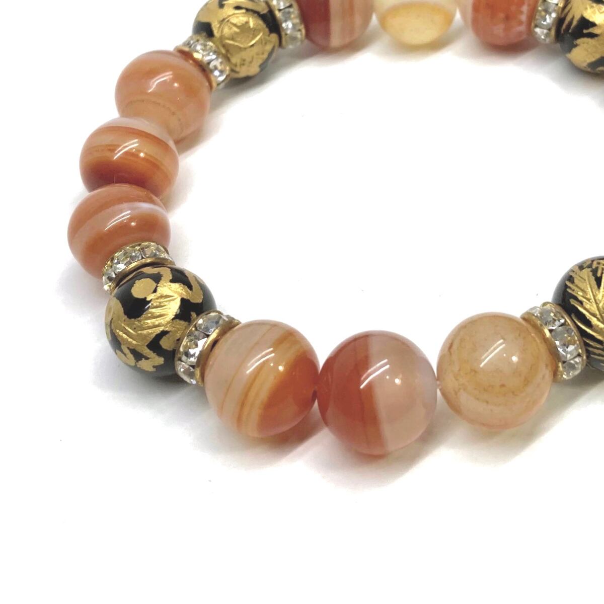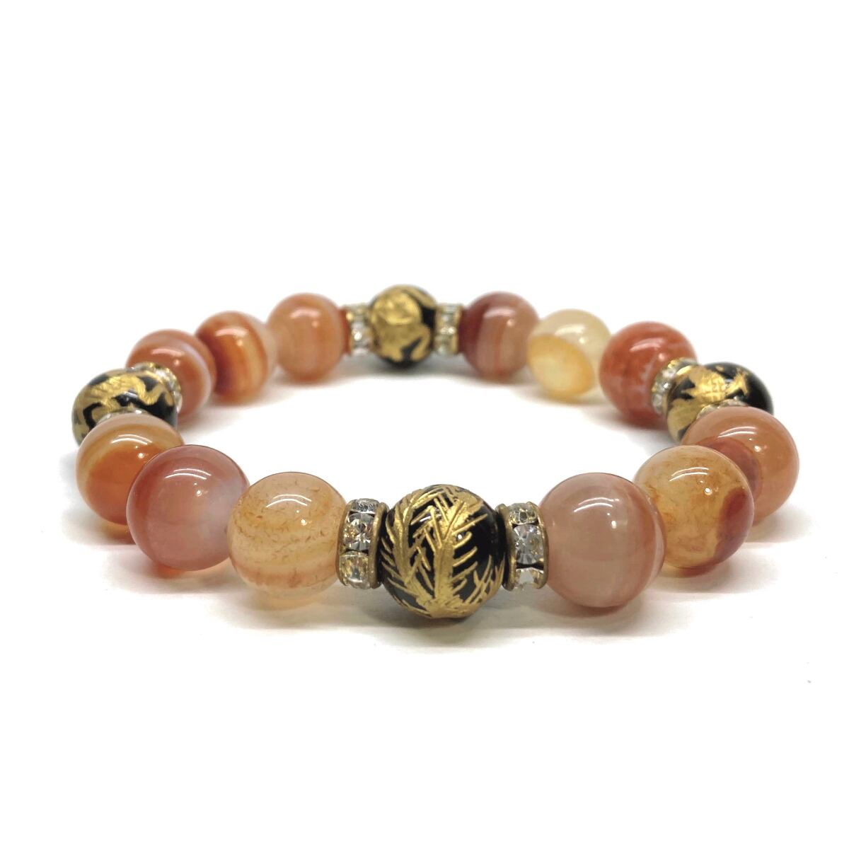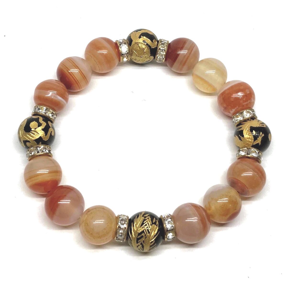 12mm 四神獣金彫オニキス×カーネリアン・サードニクス パワーストーン ブレスレット天然石 レッド天眼石 お守り 青龍 白虎 玄武 朱雀 (ゴールド)メンズ・レディース 男性・女性 数珠ブレス 開運 ☆ | パワーストーン 天然石 Kinari&Co.