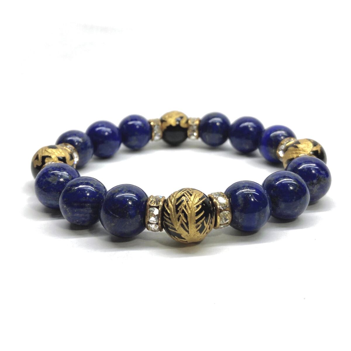 ご覧頂いているブレスレットは、四神獣金彫オニキスとラピスラズリを組み合わせたブレスレット。守り神である四神とパワーストーンの組み合わせで運気の流れを引き寄せる強運ブレスレットです。シンプルなデザインで男女問わず、年齢問わずご使用頂けるデザインなっております。シンプルなデザインは日常のアクセントとして、仕事やビジネスカジュアル、パーティーや特別なイベントなど様々なシーン活用できます。また、ちょっと贈り物にも最適なブレスレットになっております。四神獣を身につけて厄災から身を守り、多くの運気を呼び込まれてください。