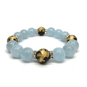 ご覧頂いているブレスレットは、四神獣金彫オニキスとアクアマリンを組み合わせたブレスレット。守り神である四神とパワーストーンの組み合わせで運気の流れを引き寄せる強運ブレスレットです。シンプルなデザインで男女問わず、年齢問わずご使用頂けるデザインなっております。シンプルなデザインは日常のアクセントとして、仕事やビジネスカジュアル、パーティーや特別なイベントなど様々なシーン活用できます。また、ちょっと贈り物にも最適なブレスレットになっております。四神獣を身につけて厄災から身を守り、多くの運気を呼び込まれてください。