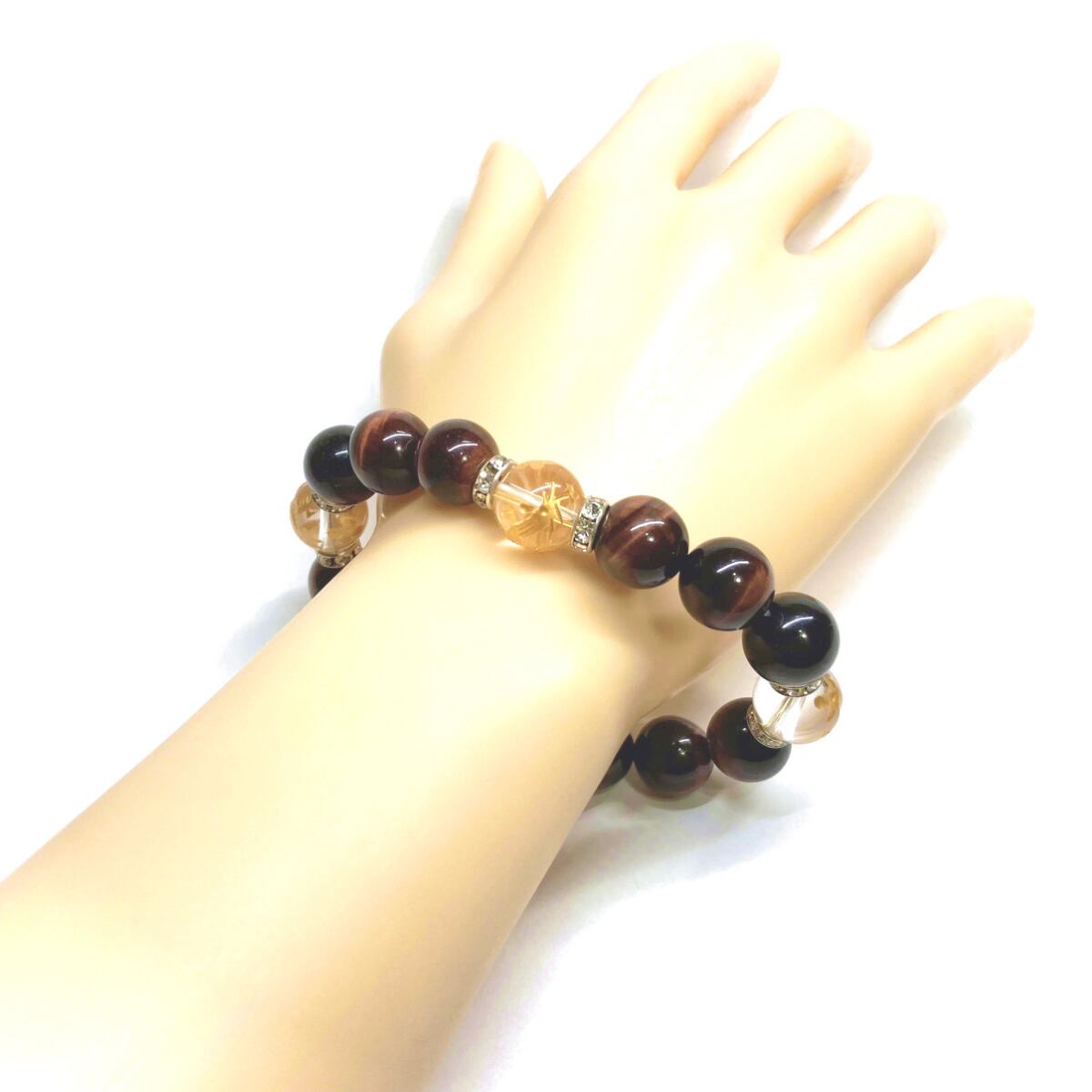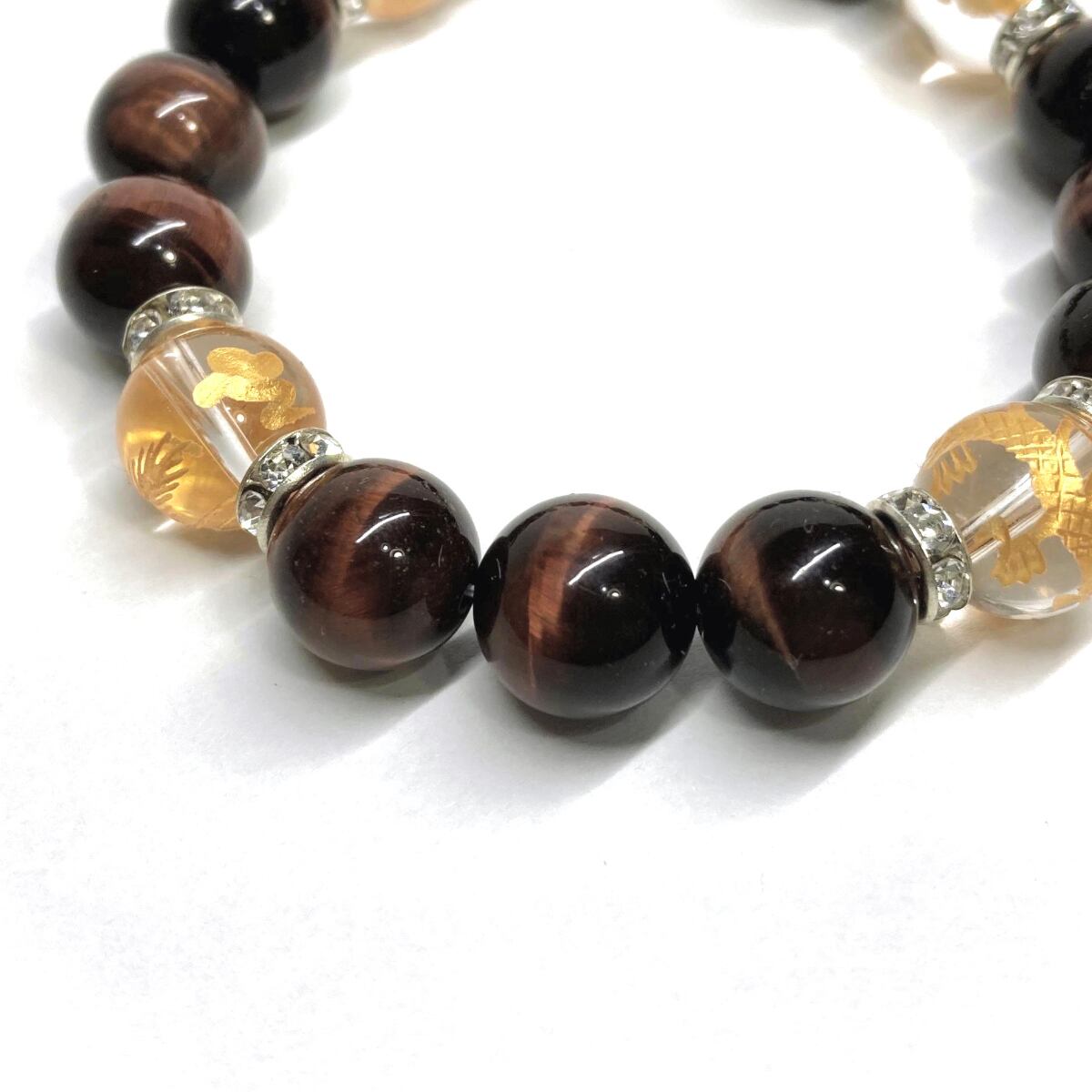12mm 四神獣金彫水晶×レッドタイガーアイ パワーストーン ブレスレット天然石 開運 ☆ 金運 ギャンブル運 お守り 青龍 白虎 玄武 朱雀 (シルバー)メンズ・レディース 男性・女性 数珠ブレス 開運 ☆