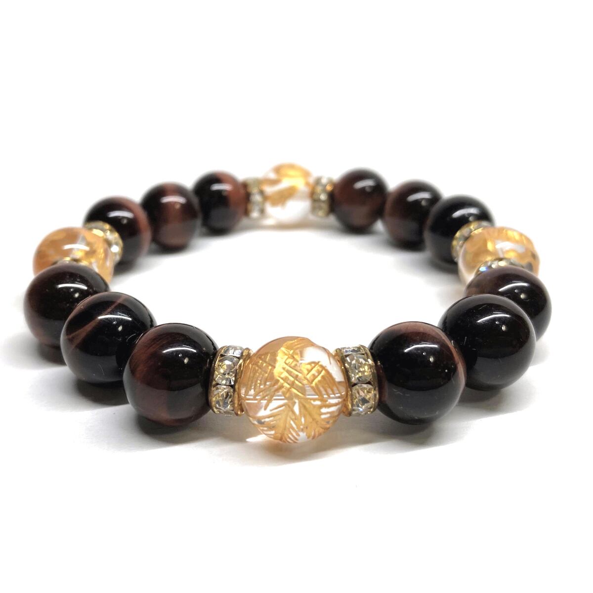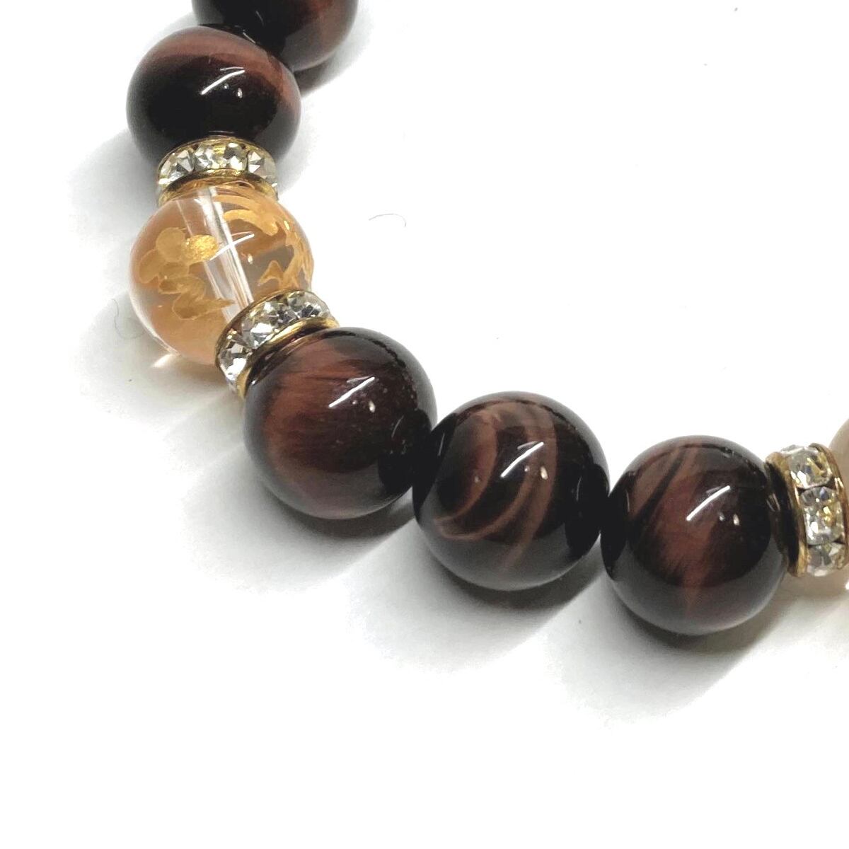 12mm 四神獣金彫水晶×レッドタイガーアイ パワーストーン ブレスレット天然石 開運 ☆ 金運 ギャンブル運 お守り 青龍 白虎 玄武 朱雀 (ゴールド)メンズ・レディース 男性・女性 数珠ブレス 開運 ☆ | パワーストーン 天然石 Kinari&Co.