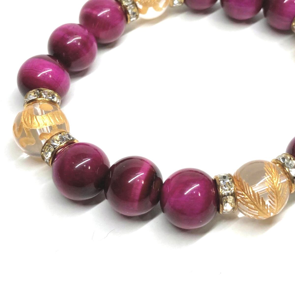 ご覧頂いているブレスレットは、四神獣金彫水晶とピンクタイガーアイを組み合わせたブレスレット。守り神である四神とパワーストーンの組み合わせで運気の流れを引き寄せる強運ブレスレットです。シンプルなデザインで男女問わず、年齢問わずご使用頂けるデザインなっております。シンプルなデザインは日常のアクセントとして、仕事やビジネスカジュアル、パーティーや特別なイベントなど様々なシーン活用できます。また、ちょっと贈り物にも最適なブレスレットになっております。四神獣を身につけて厄災から身を守り、多くの運気を呼び込まれてください。