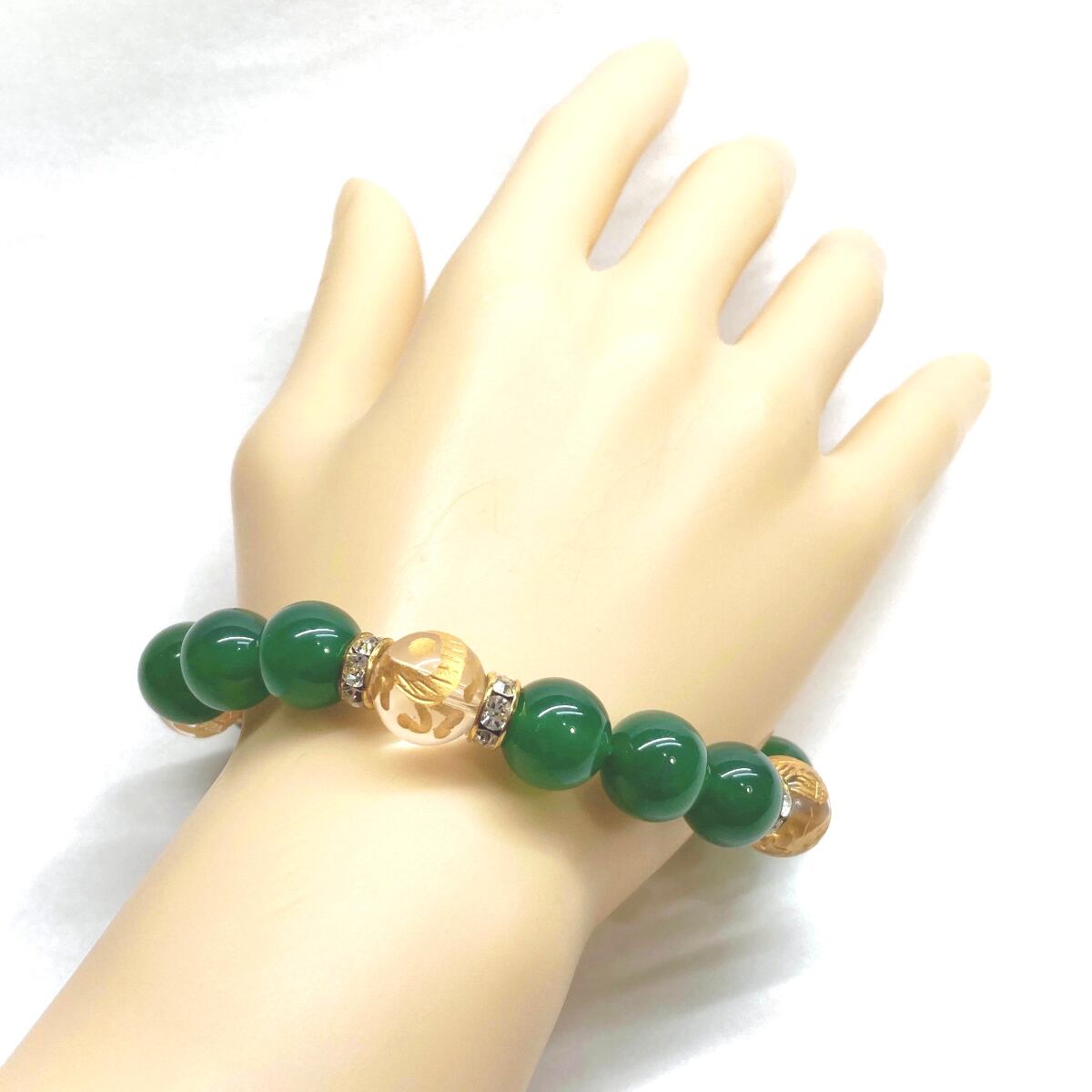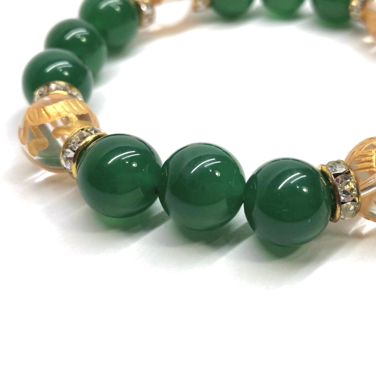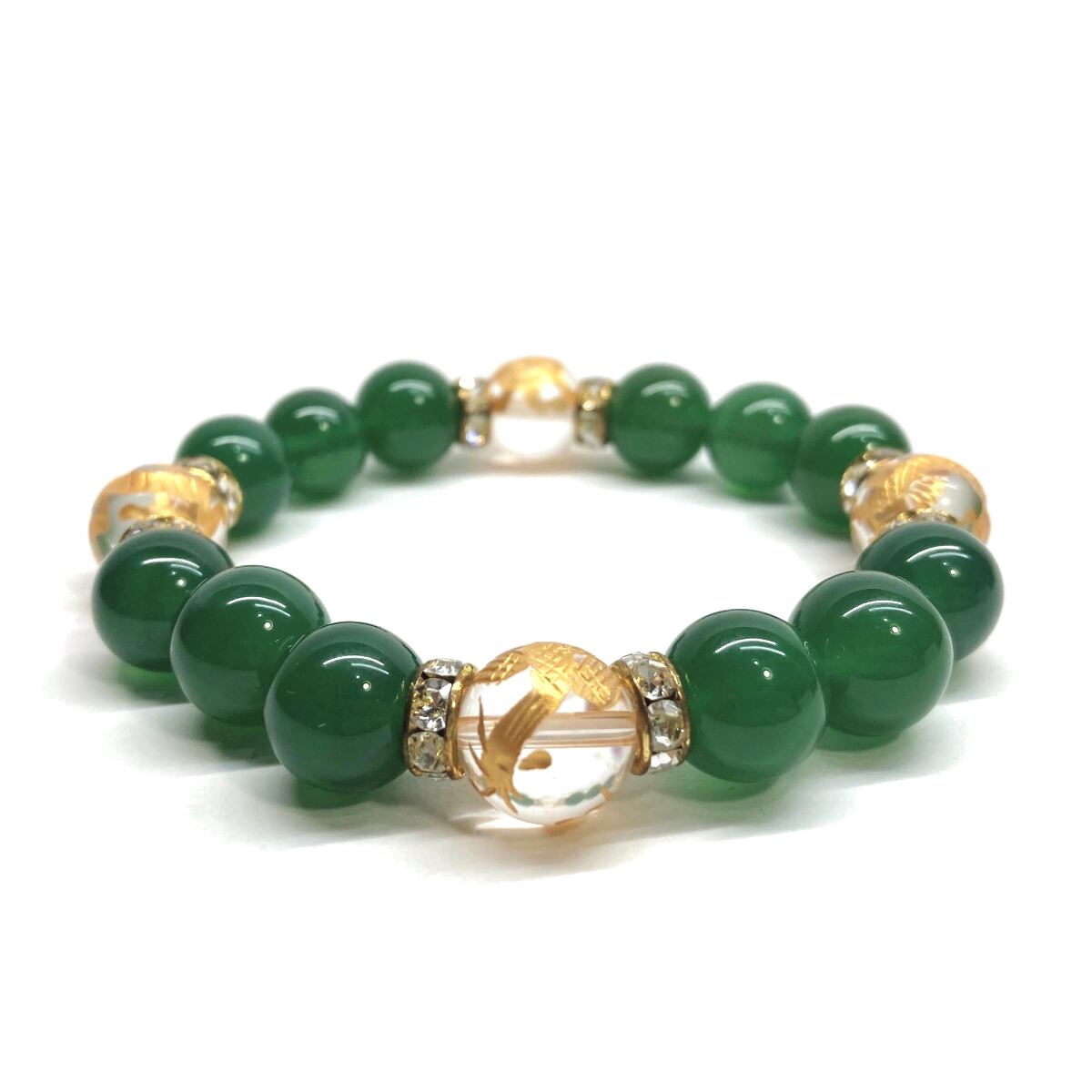 12mm 四神獣金彫水晶×緑瑪瑙 パワーストーン ブレスレット天然石 運気上昇 開運 ☆ 金運 健康運 お守り 青龍 白虎 玄武 朱雀 (ゴールド)メンズ・レディース 男性・女性 数珠ブレス 開運 ☆