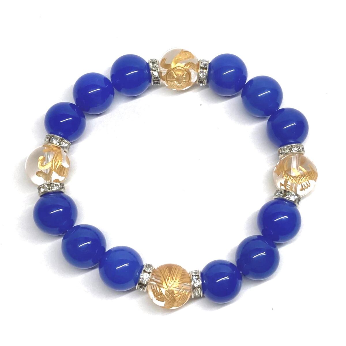 ご覧頂いているブレスレットは、四神獣金彫水晶と青瑪瑙を組み合わせたブレスレット。守り神である四神とパワーストーンの組み合わせで運気の流れを引き寄せる強運ブレスレットです。シンプルなデザインで男女問わず、年齢問わずご使用頂けるデザインなっております。シンプルなデザインは日常のアクセントとして、仕事やビジネスカジュアル、パーティーや特別なイベントなど様々なシーン活用できます。また、ちょっと贈り物にも最適なブレスレットになっております。四神獣を身につけて厄災から身を守り、多くの運気を呼び込まれてください。