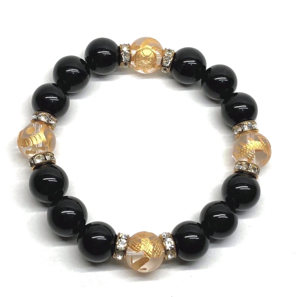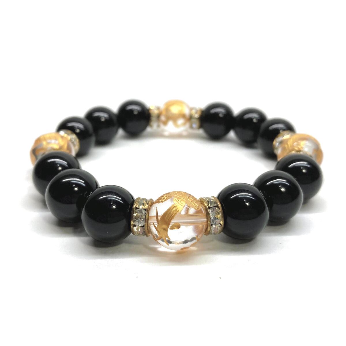 12mm 四神獣金彫水晶×オニキス パワーストーン ブレスレット天然石 運気上昇 開運 ☆ 金運 健康運 厄払い お守り 青龍 白虎 玄武 朱雀 (ゴールド)メンズ・レディース 男性・女性 数珠ブレス 開運 ☆ | パワーストーン 天然石 Kinari&Co.