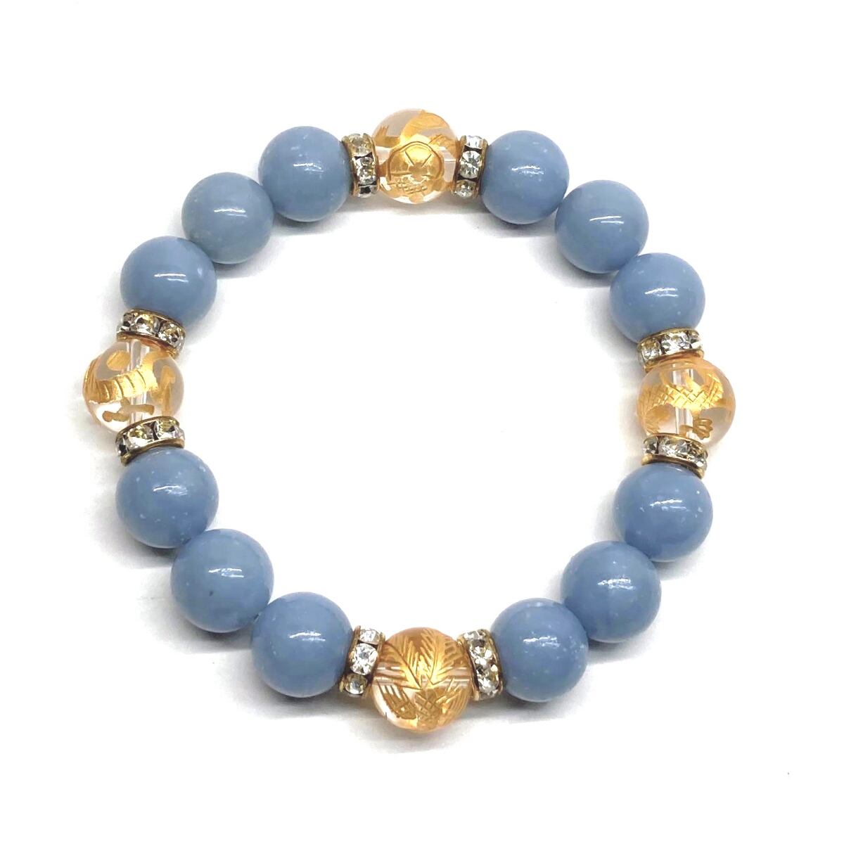 ご覧頂いているブレスレットは、四神獣金彫水晶とエンジェライトを組み合わせたブレスレット。守り神である四神とパワーストーンの組み合わせで運気の流れを引き寄せる強運ブレスレットです。シンプルなデザインで男女問わず、年齢問わずご使用頂けるデザインなっております。シンプルなデザインは日常のアクセントとして、仕事やビジネスカジュアル、パーティーや特別なイベントなど様々なシーン活用できます。また、ちょっと贈り物にも最適なブレスレットになっております。四神獣を身につけて厄災から身を守り、多くの運気を呼び込まれてください。