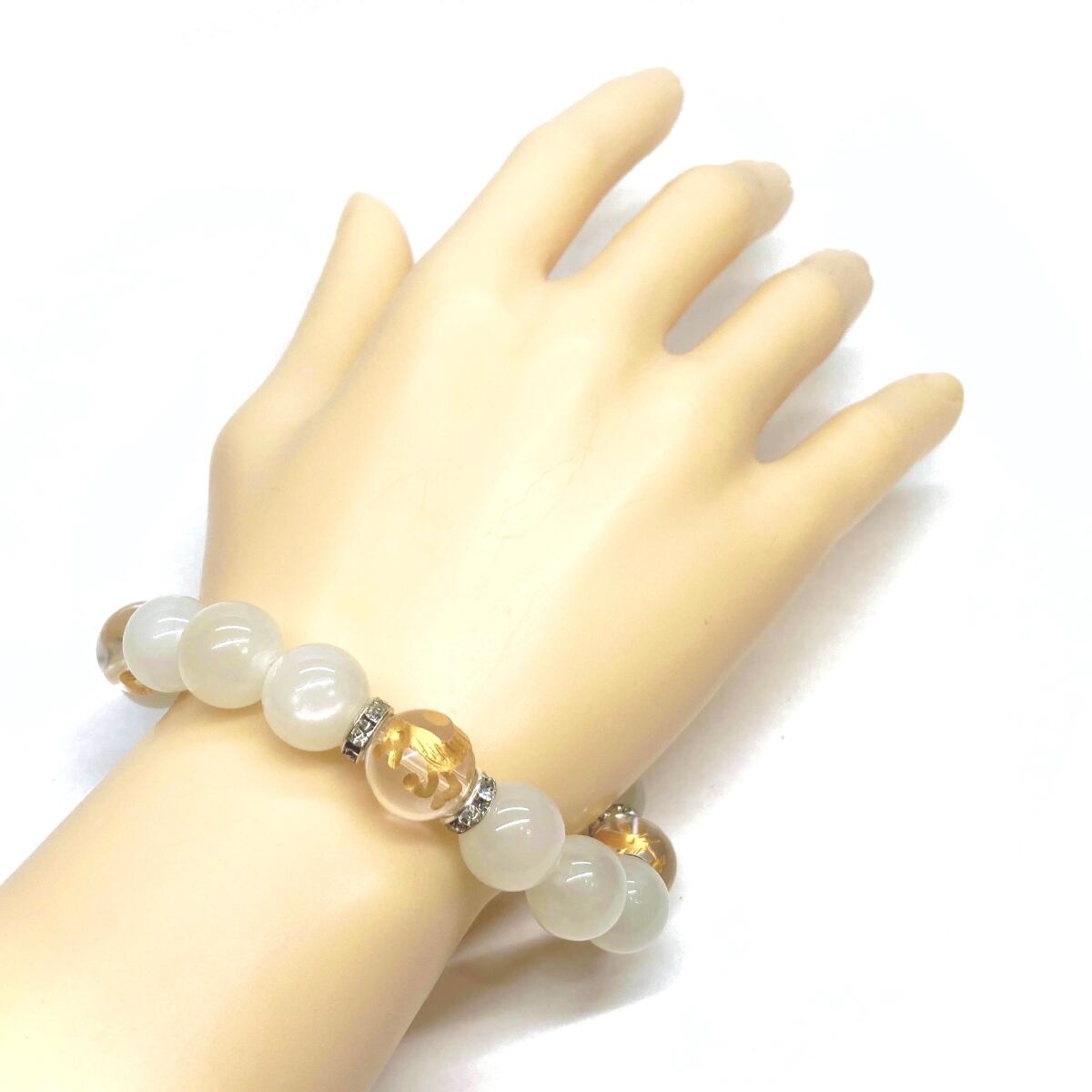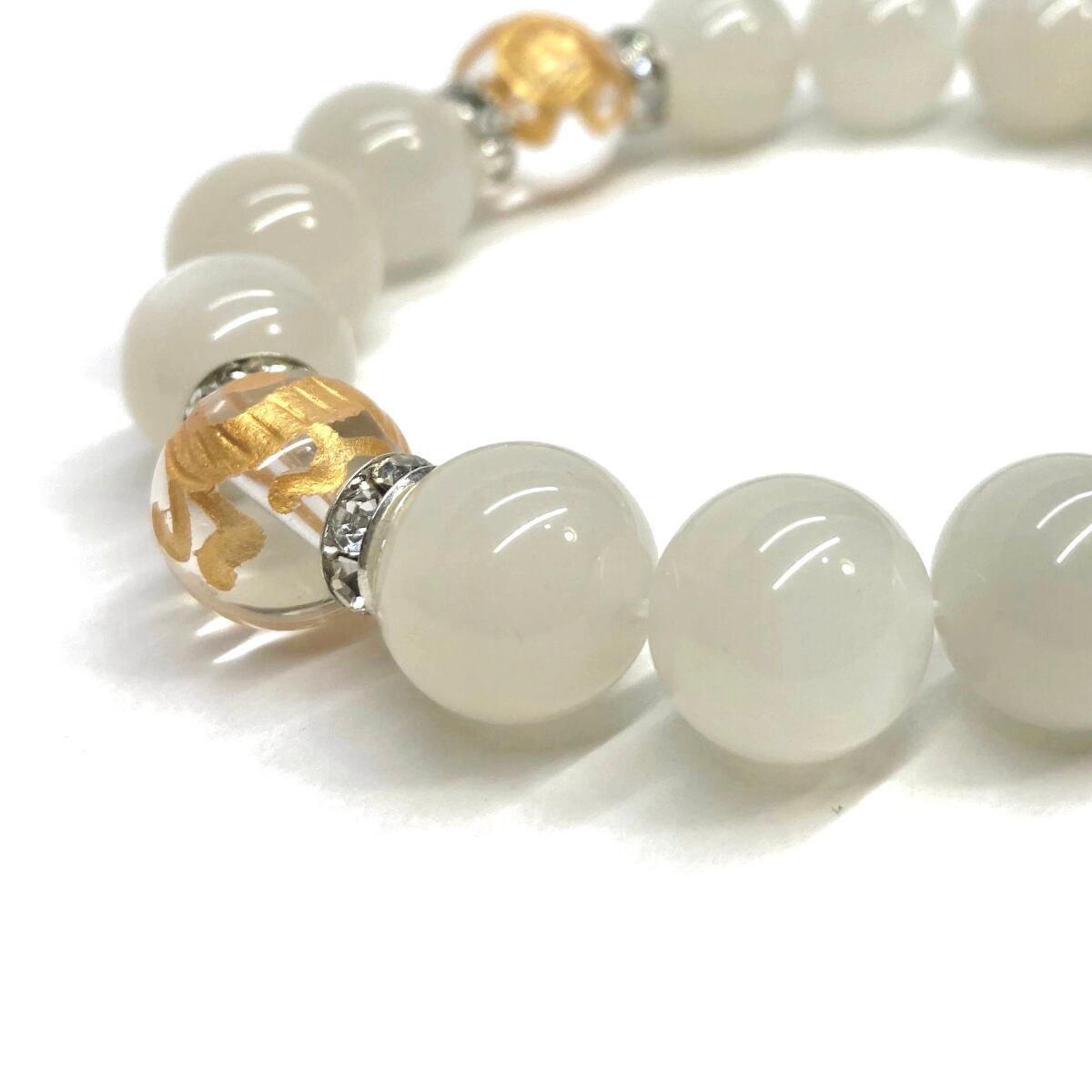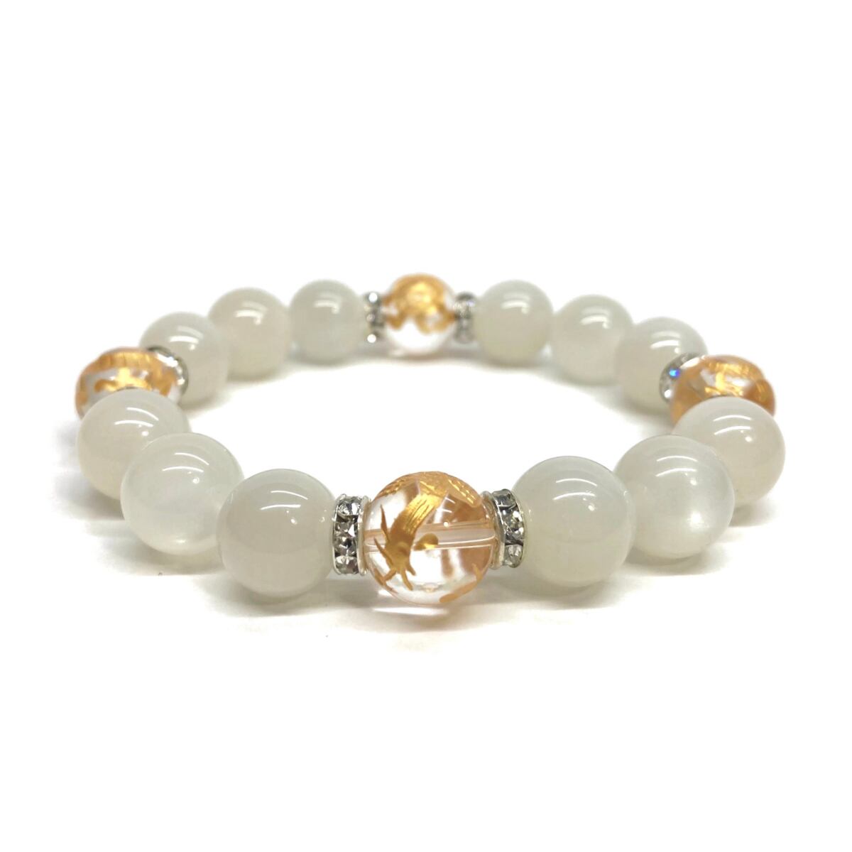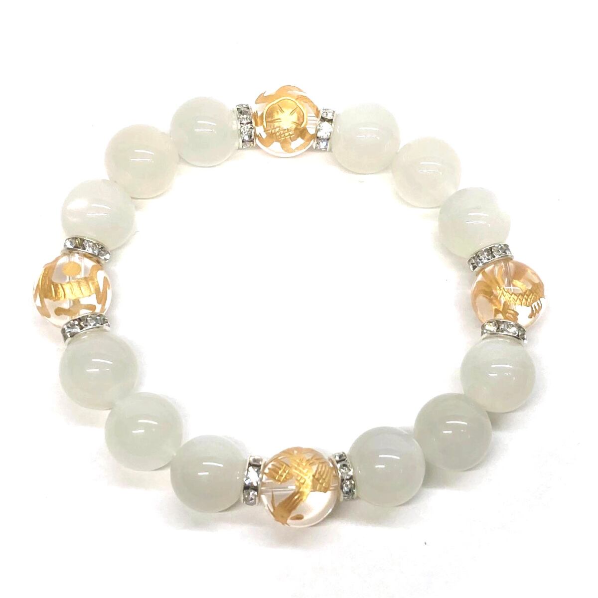 12mm 四神獣金彫水晶×ムーンストーン パワーストーン ブレスレット天然石 運気上昇 開運 ☆ お守り 青龍 白虎 玄武 朱雀 6月誕生石 (シルバー)メンズ・レディース 男性・女性 数珠ブレス 開運 ☆ | パワーストーン 天然石 Kinari&Co.