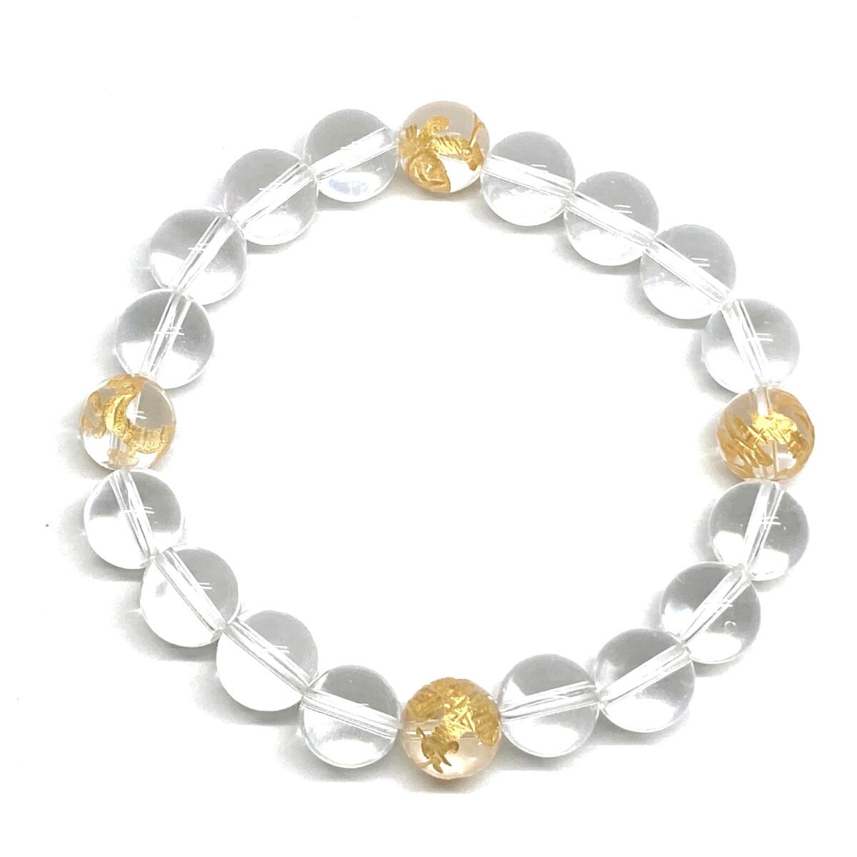 ご覧頂いているブレスレットは、四神獣金彫水晶と水晶を組み合わせたブレスレット。守り神である四神とパワーストーンの組み合わせで運気の流れを引き寄せる強運ブレスレットです。シンプルなデザインで男女問わず、年齢問わずご使用頂けるデザインなっております。シンプルなデザインは日常のアクセントとして、仕事やビジネスカジュアル、パーティーや特別なイベントなど様々なシーン活用できます。また、ちょっと贈り物にも最適なブレスレットになっております。四神獣を身につけて厄災から身を守り、多くの運気を呼び込まれてください。