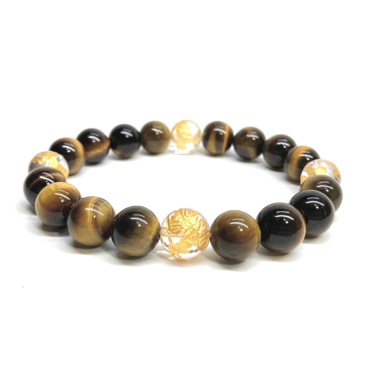 ご覧頂いているブレスレットは、四神獣金彫水晶とタイガーアイを組み合わせたブレスレット。守り神である四神とパワーストーンの組み合わせで運気の流れを引き寄せる強運ブレスレットです。シンプルなデザインで男女問わず、年齢問わずご使用頂けるデザインなっております。シンプルなデザインは日常のアクセントとして、仕事やビジネスカジュアル、パーティーや特別なイベントなど様々なシーン活用できます。また、ちょっと贈り物にも最適なブレスレットになっております。四神獣を身につけて厄災から身を守り、多くの運気を呼び込まれてください。