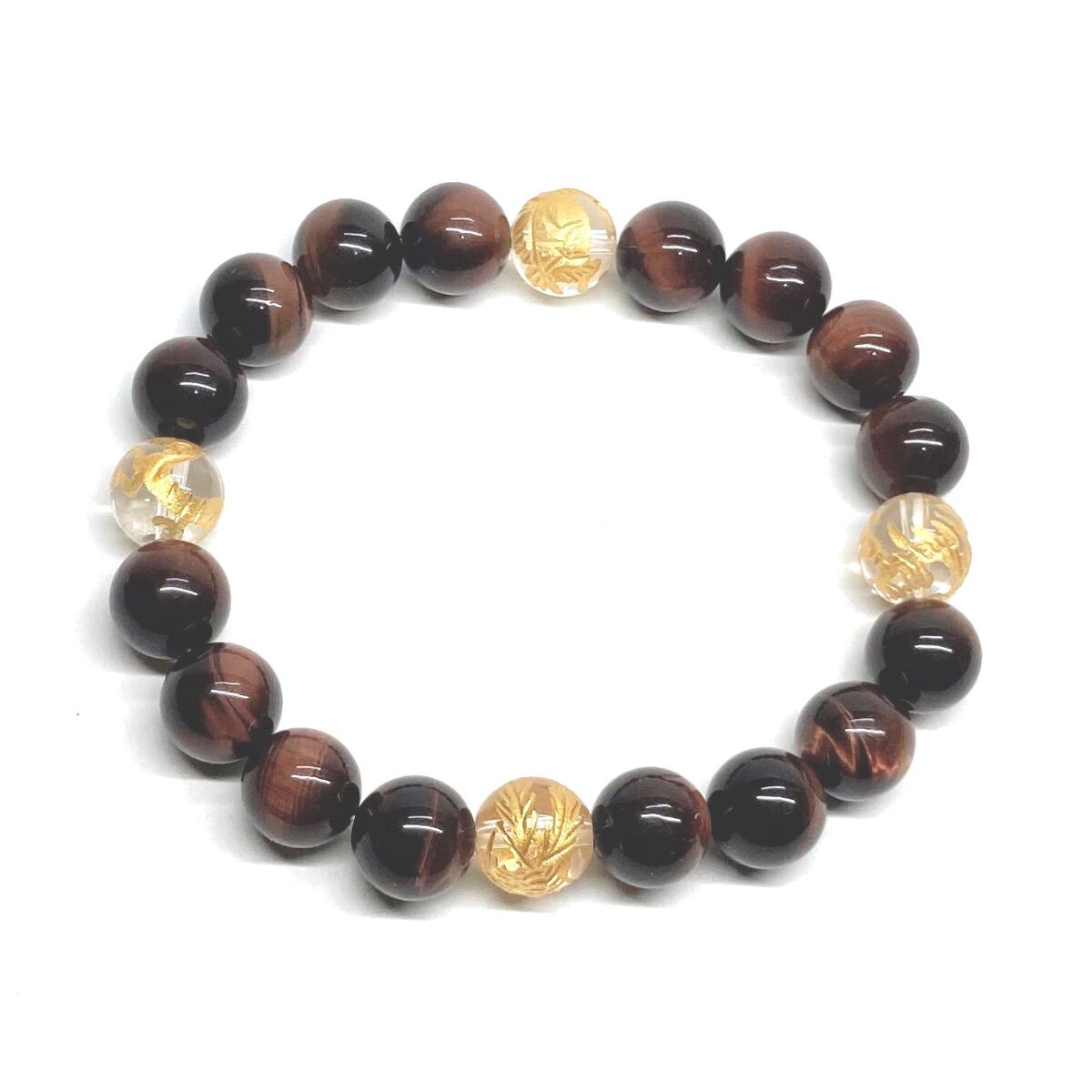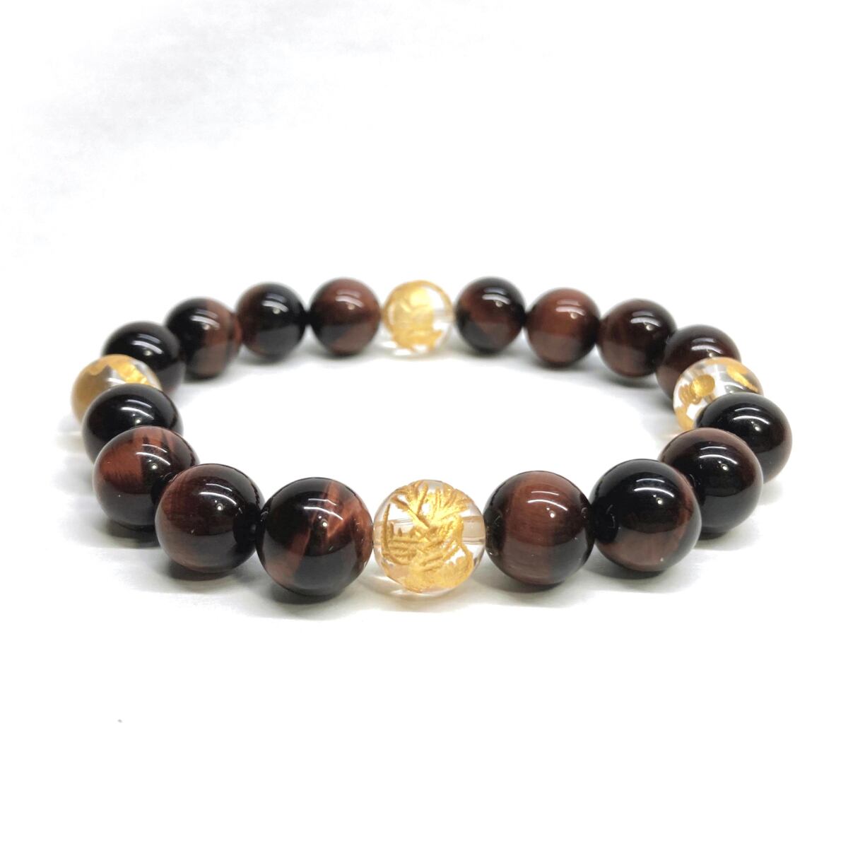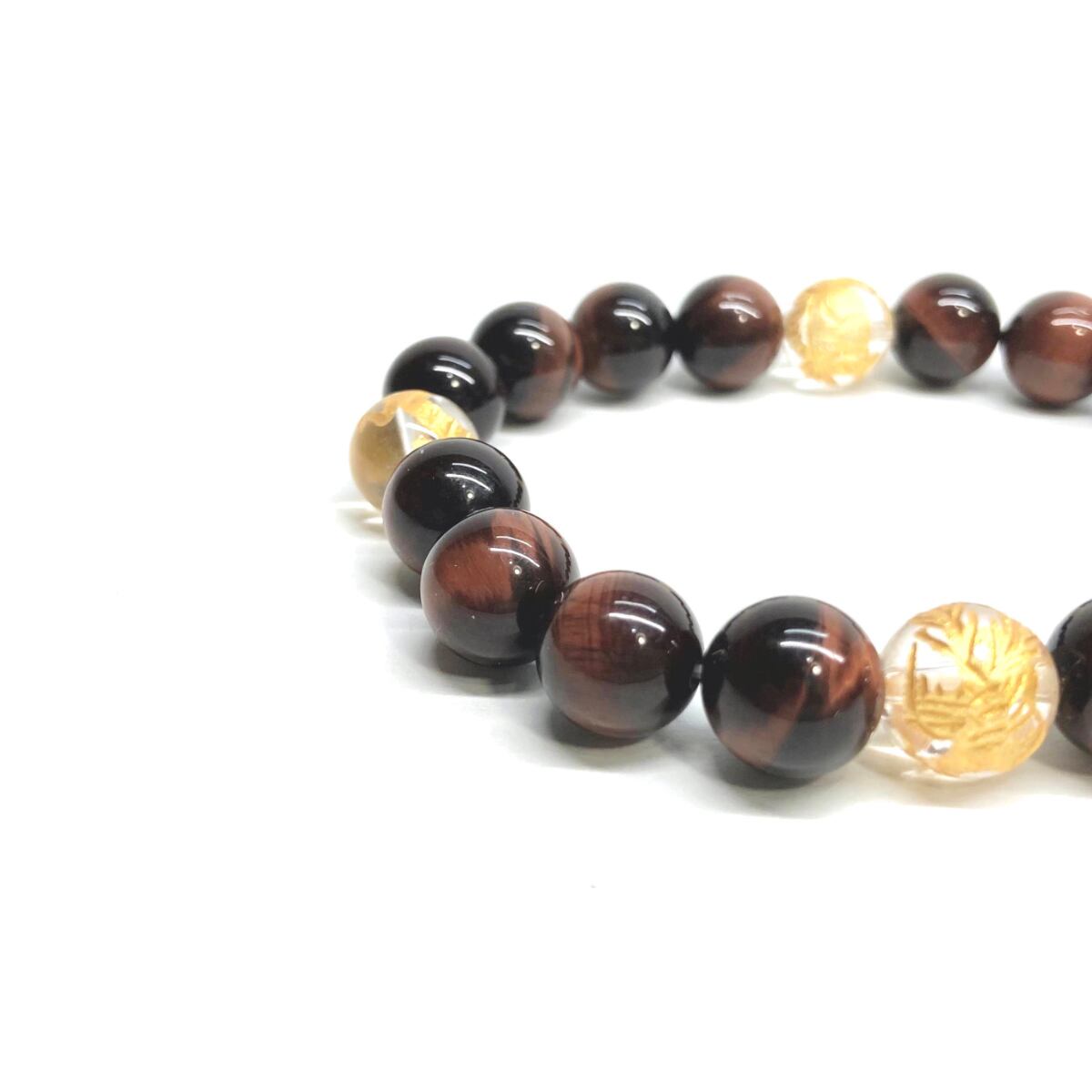 ご覧頂いているブレスレットは、四神獣金彫水晶とレッドタイガーアイを組み合わせたブレスレット。守り神である四神とパワーストーンの組み合わせで運気の流れを引き寄せる強運ブレスレットです。シンプルなデザインで男女問わず、年齢問わずご使用頂けるデザインなっております。シンプルなデザインは日常のアクセントとして、仕事やビジネスカジュアル、パーティーや特別なイベントなど様々なシーン活用できます。また、ちょっと贈り物にも最適なブレスレットになっております。四神獣を身につけて厄災から身を守り、多くの運気を呼び込まれてください。
