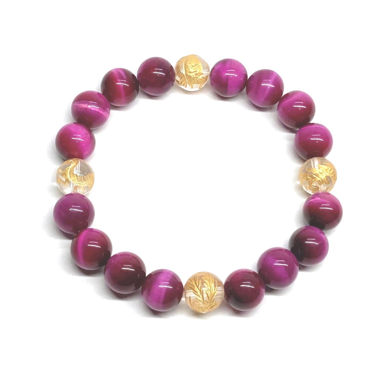 ご覧頂いているブレスレットは、四神獣金彫水晶とピンクタイガーアイを組み合わせたブレスレット。守り神である四神とパワーストーンの組み合わせで運気の流れを引き寄せる強運ブレスレットです。シンプルなデザインで男女問わず、年齢問わずご使用頂けるデザインなっております。シンプルなデザインは日常のアクセントとして、仕事やビジネスカジュアル、パーティーや特別なイベントなど様々なシーン活用できます。また、ちょっと贈り物にも最適なブレスレットになっております。四神獣を身につけて厄災から身を守り、多くの運気を呼び込まれてください。