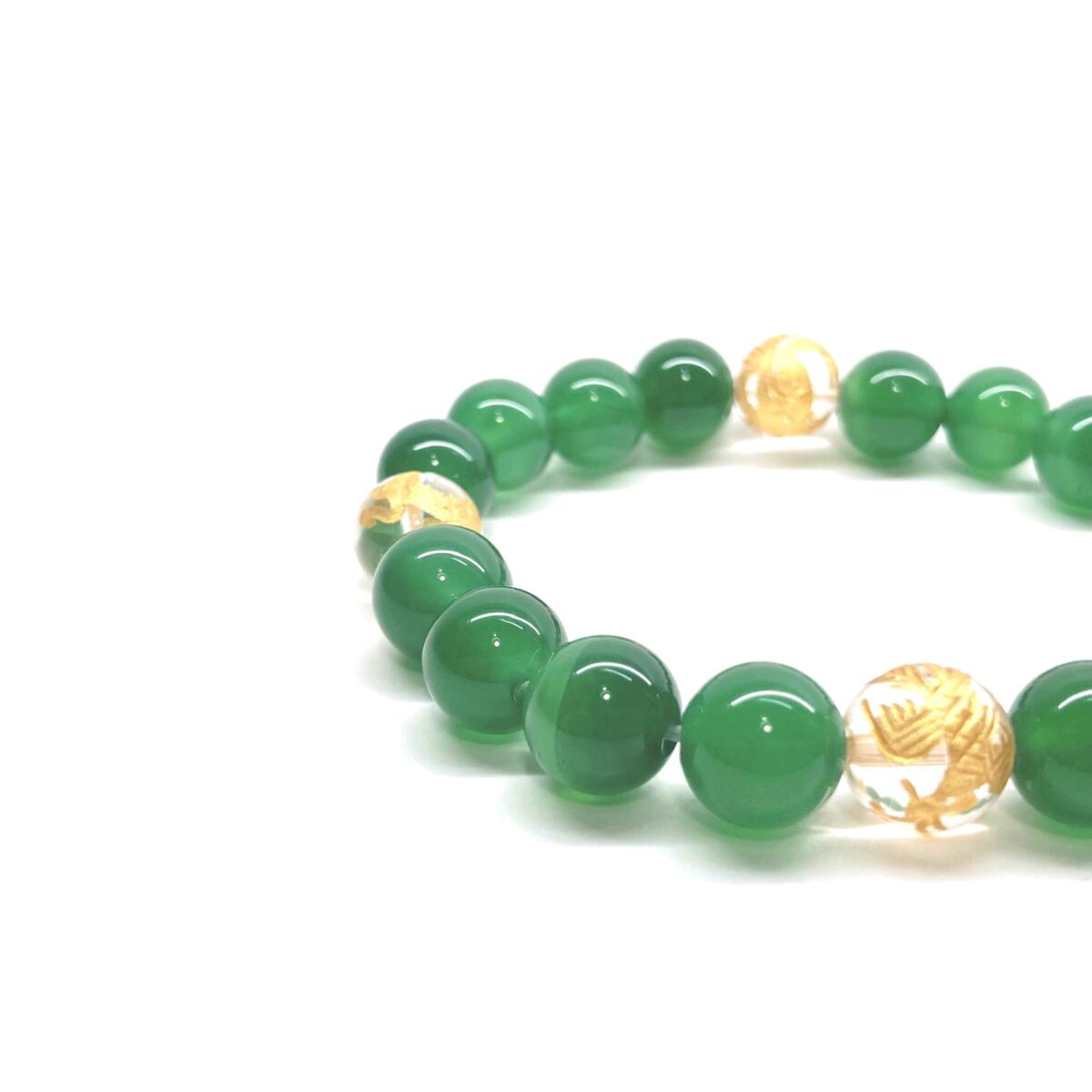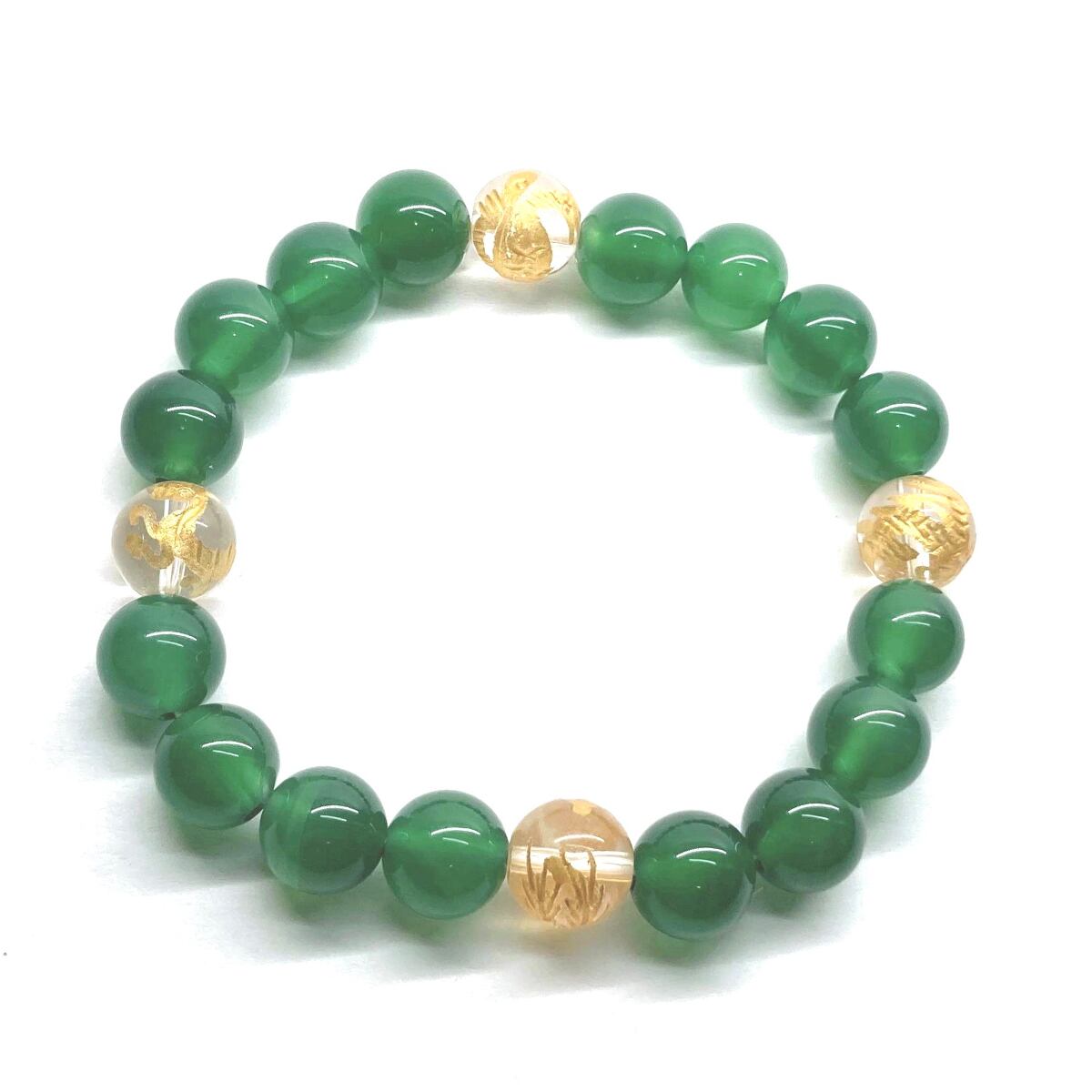ご覧頂いているブレスレットは、四神獣金彫水晶と緑瑪瑙を組み合わせたブレスレット。守り神である四神とパワーストーンの組み合わせで運気の流れを引き寄せる強運ブレスレットです。シンプルなデザインで男女問わず、年齢問わずご使用頂けるデザインなっております。シンプルなデザインは日常のアクセントとして、仕事やビジネスカジュアル、パーティーや特別なイベントなど様々なシーン活用できます。また、ちょっと贈り物にも最適なブレスレットになっております。四神獣を身につけて厄災から身を守り、多くの運気を呼び込まれてください。
