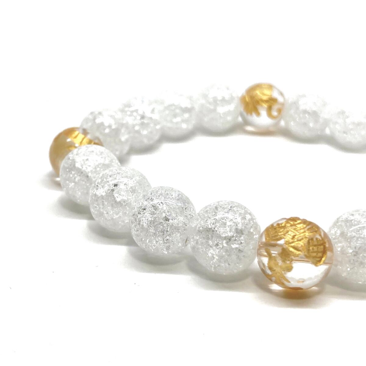 ご覧頂いているブレスレットは、四神獣金彫水晶とクラック水晶を組み合わせたブレスレット。守り神である四神とパワーストーンの組み合わせで運気の流れを引き寄せる強運ブレスレットです。シンプルなデザインで男女問わず、年齢問わずご使用頂けるデザインなっております。シンプルなデザインは日常のアクセントとして、仕事やビジネスカジュアル、パーティーや特別なイベントなど様々なシーン活用できます。また、ちょっと贈り物にも最適なブレスレットになっております。四神獣を身につけて厄災から身を守り、多くの運気を呼び込まれてください。