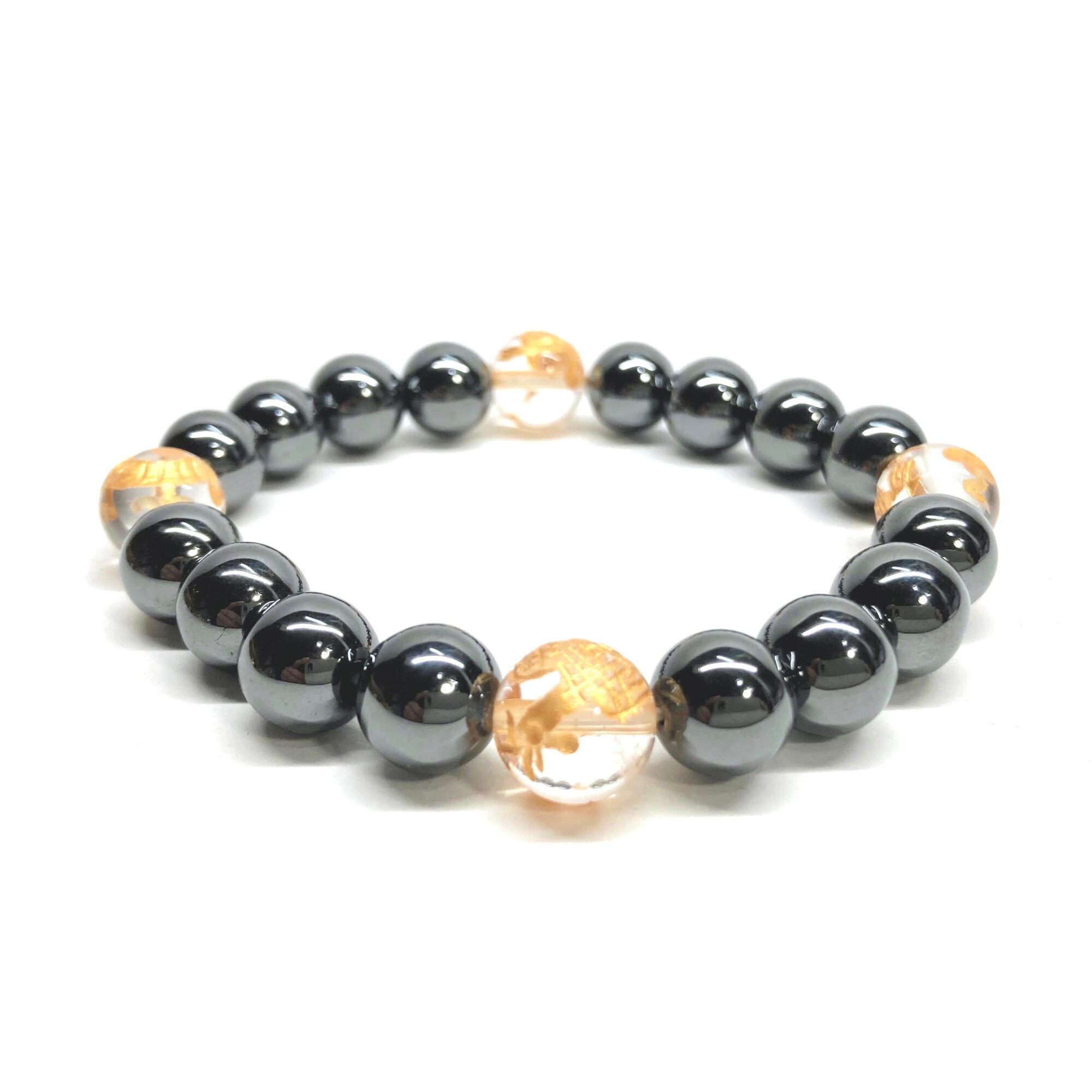 ご覧頂いているブレスレットは、四神獣金彫水晶とヘマタイトを組み合わせたブレスレット。守り神である四神とパワーストーンの組み合わせで運気の流れを引き寄せる強運ブレスレットです。シンプルなデザインで男女問わず、年齢問わずご使用頂けるデザインなっております。シンプルなデザインは日常のアクセントとして、仕事やビジネスカジュアル、パーティーや特別なイベントなど様々なシーン活用できます。また、ちょっと贈り物にも最適なブレスレットになっております。四神獣を身につけて厄災から身を守り、多くの運気を呼び込まれてください。